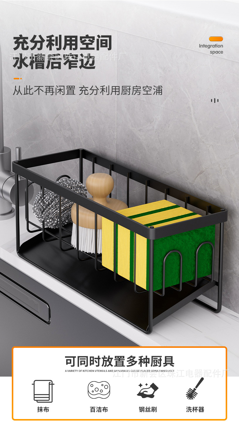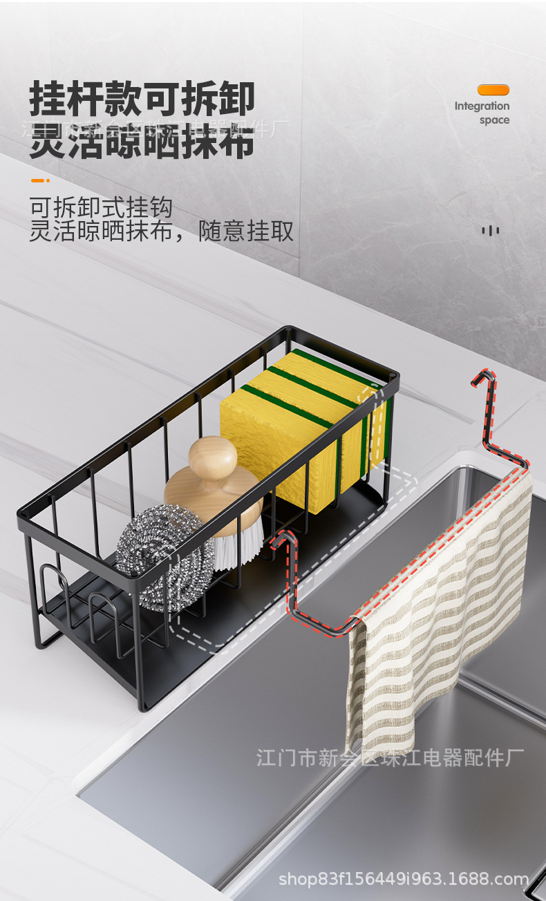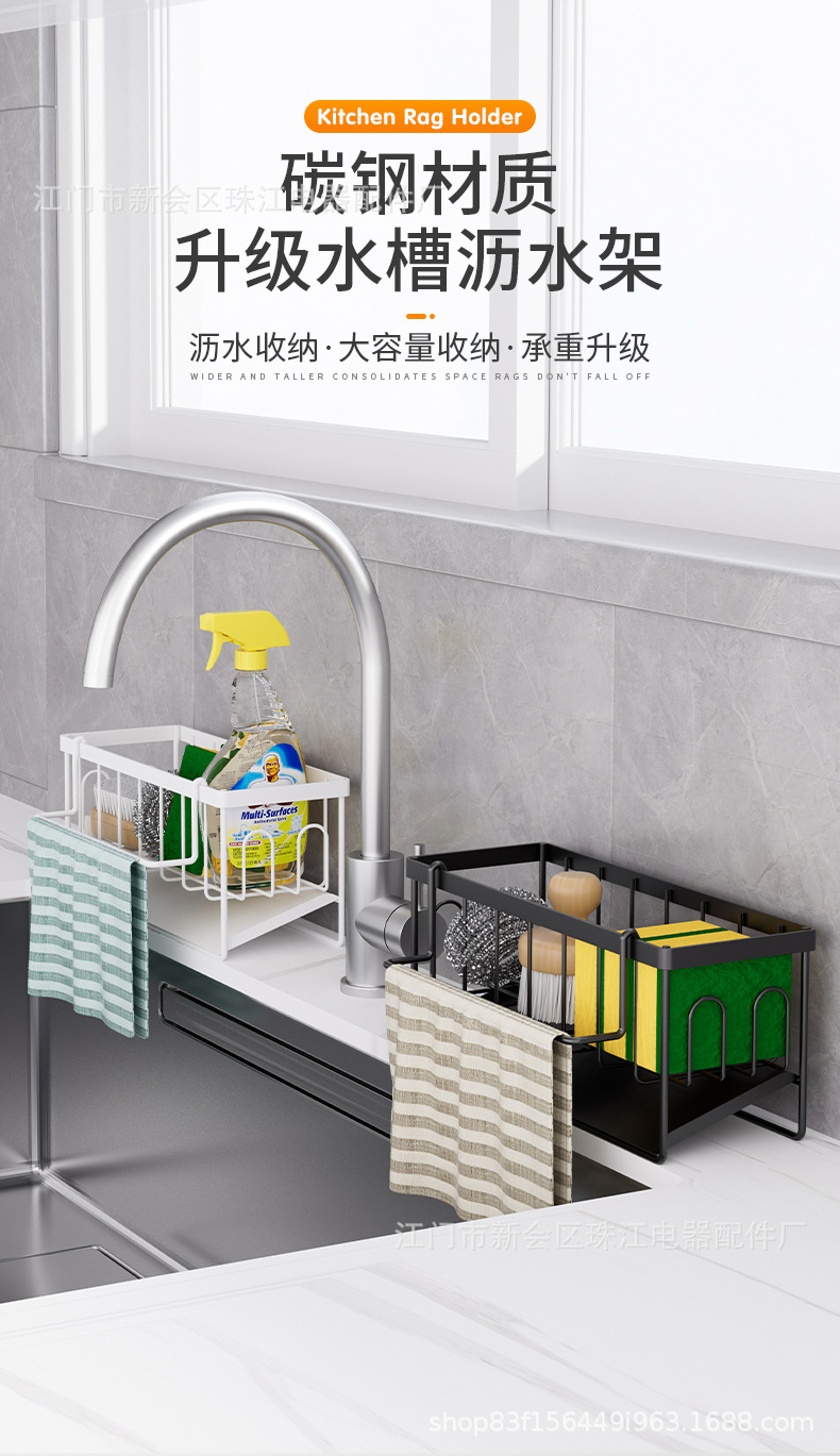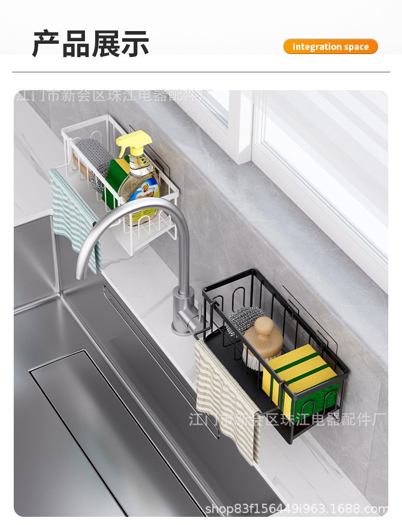 주방 수납 선반, 조리대 수세미 건조대, 스펀지, 철수세미, 세척용품 보관 정리 걸이, 수세미 걸이, 해외 직구