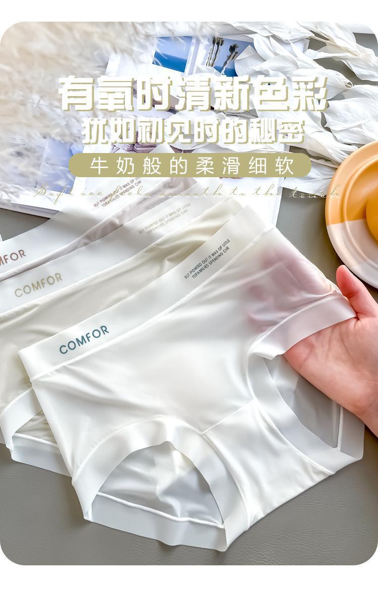 여름 아이스 실크 tracless 속옷 여성의 중간 허리 마스크 바지 간단한 편안한 통기성 일본 달콤한 소녀 브리프