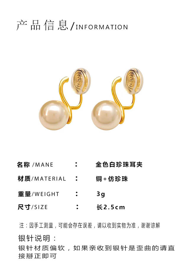 • 황금 흰색 진주 귀 클립 R4594A