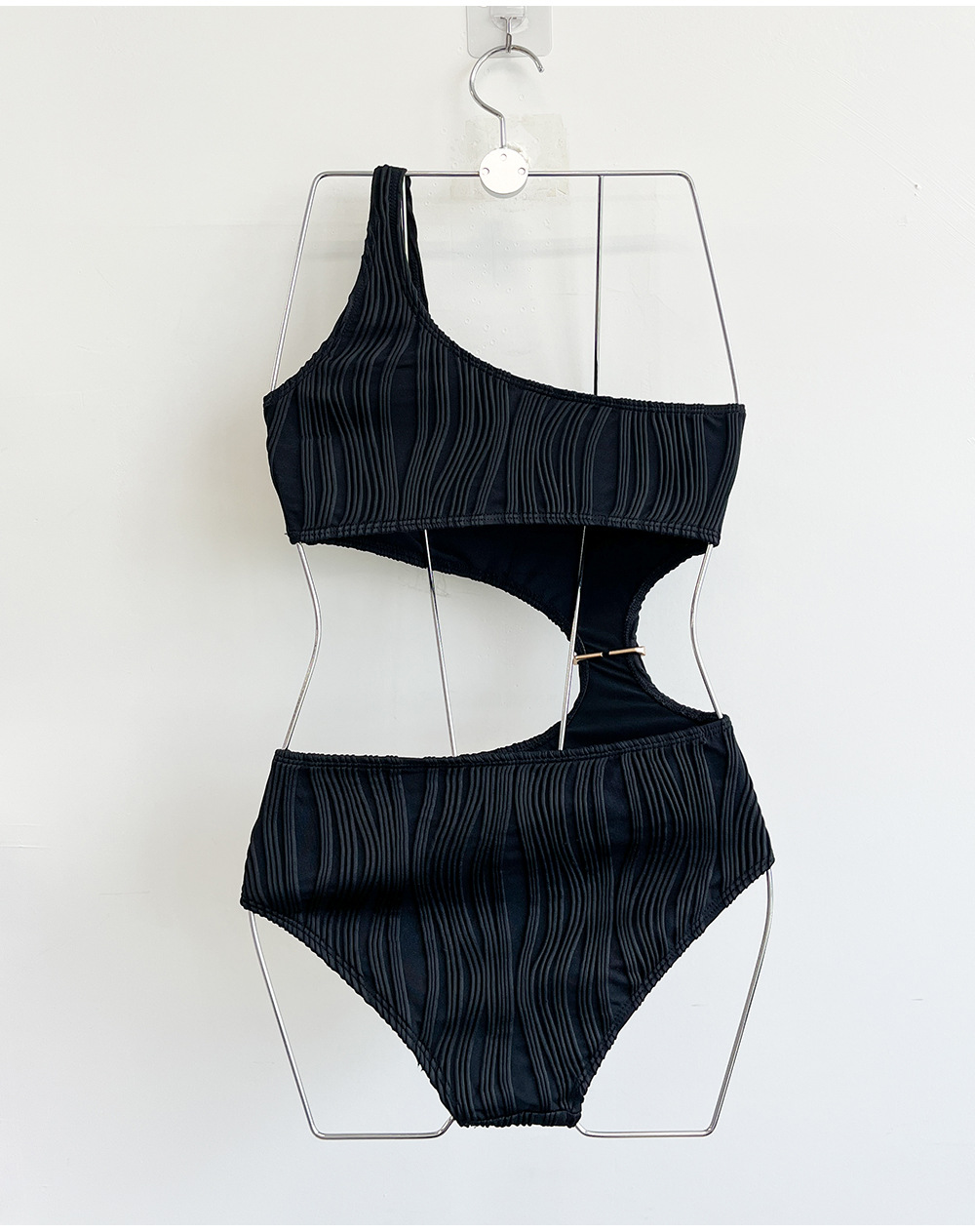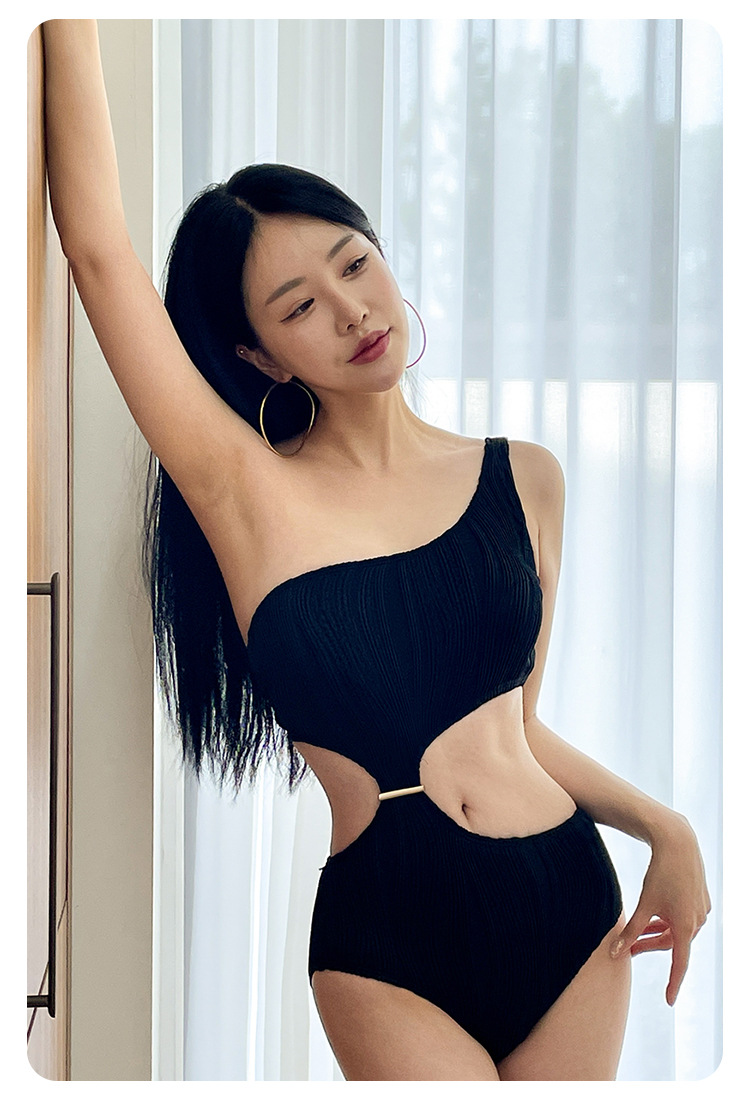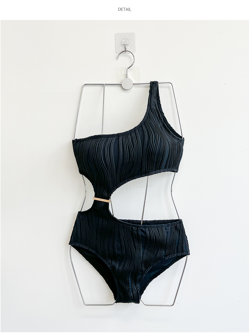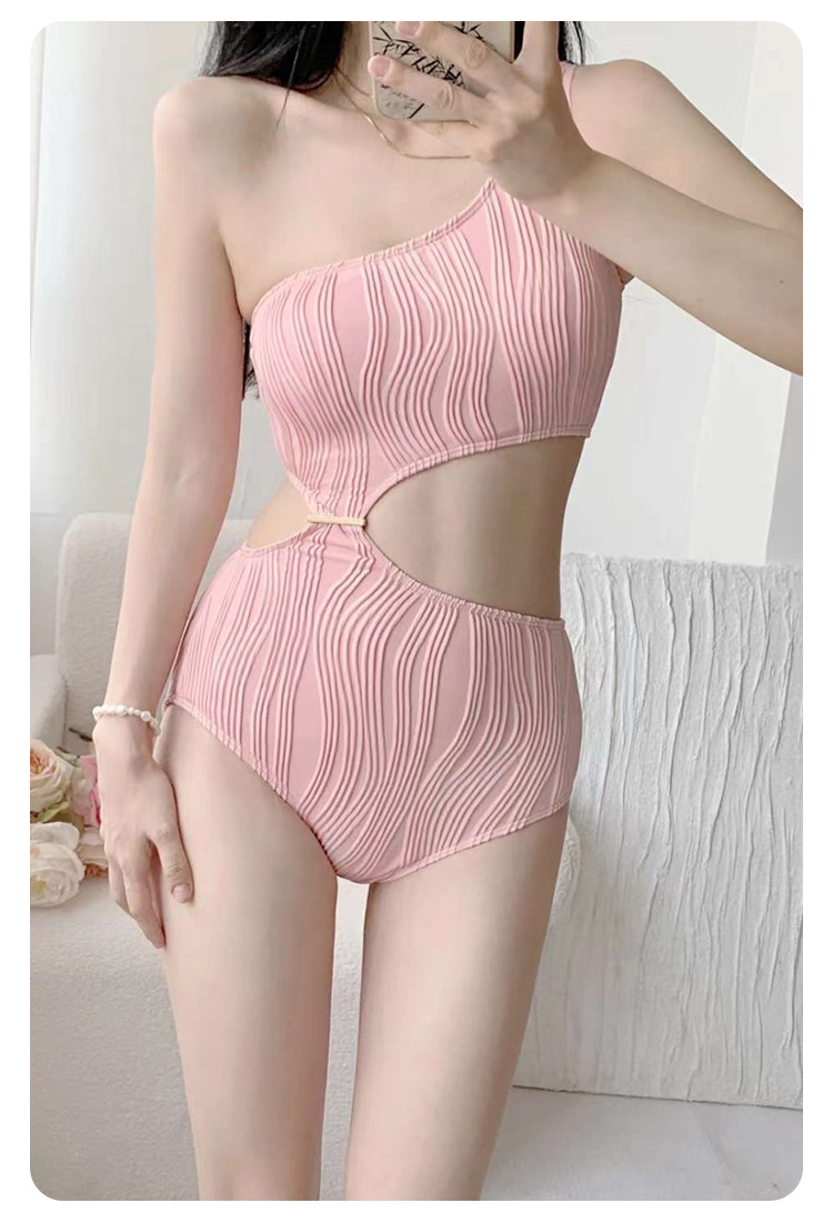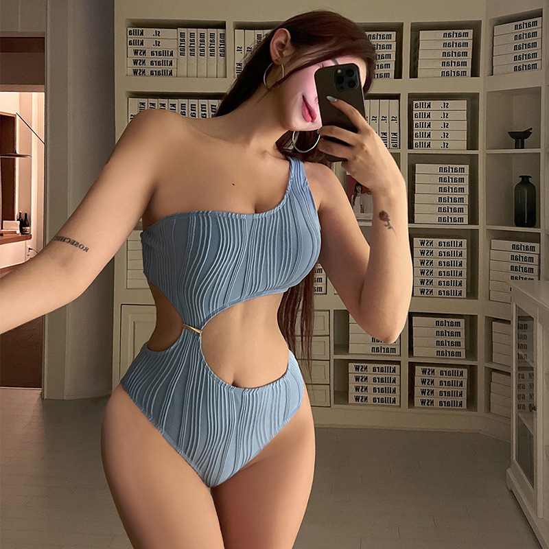 웨이브 패턴 원 숄더 수영복 여성 섹시 노출 허리 Ins 인터넷 인기 휴가 하이 엔드 수영복 온천스토어 가기