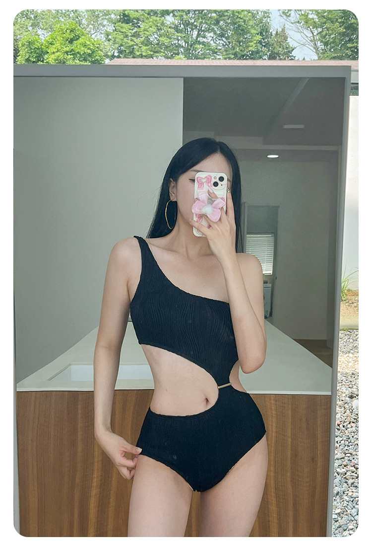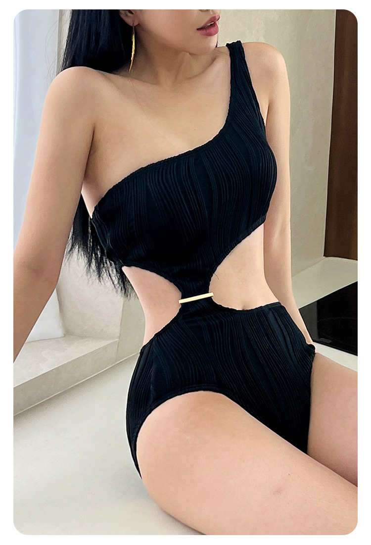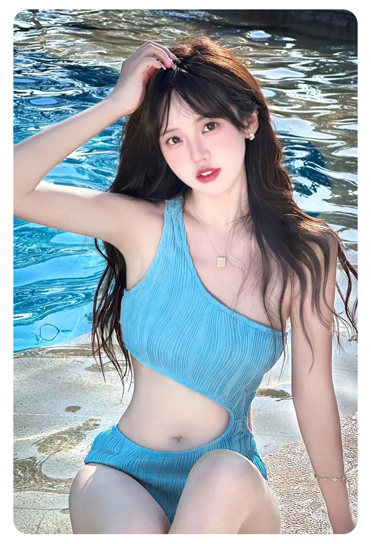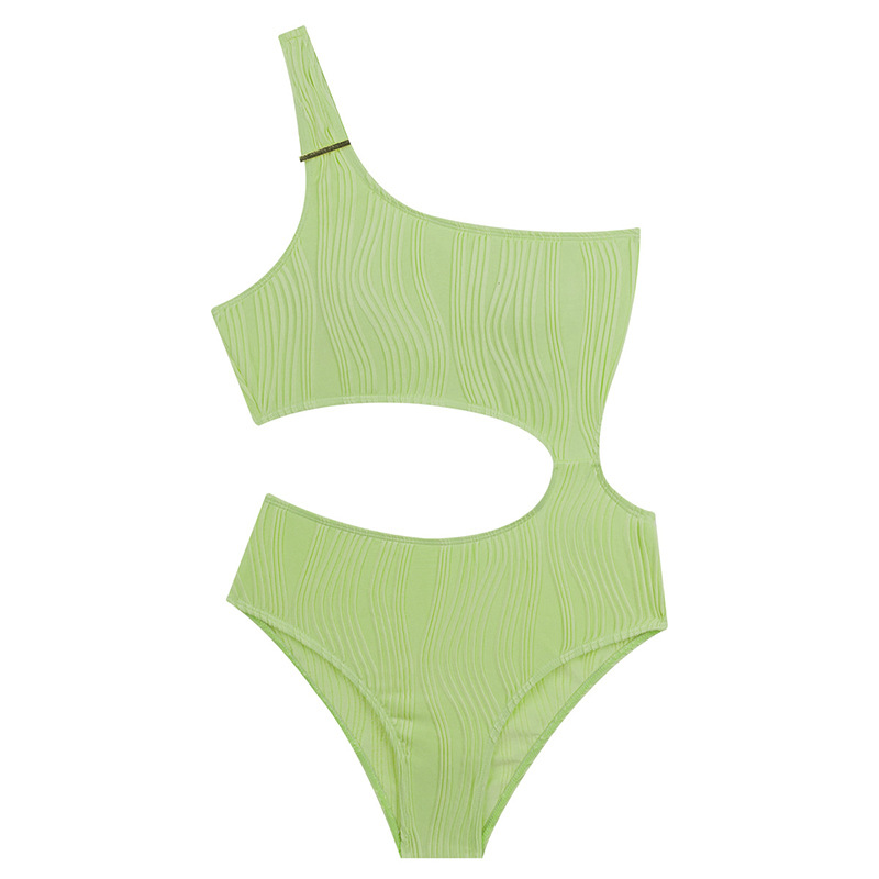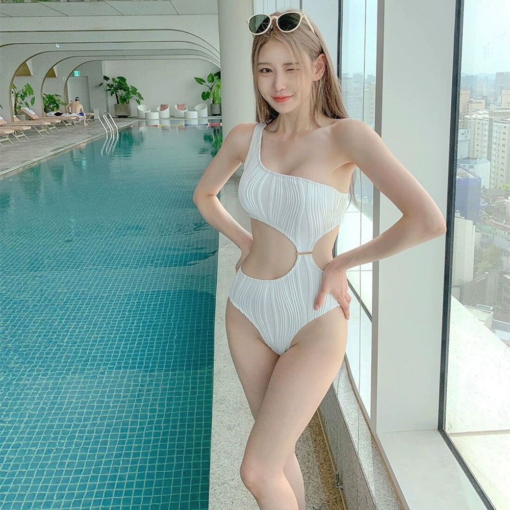 웨이브 패턴 원 숄더 수영복 여성 섹시 노출 허리 Ins 인터넷 인기 휴가 하이 엔드 수영복 온천스토어 가기