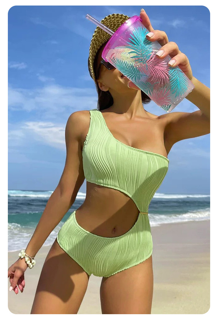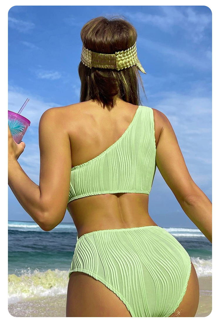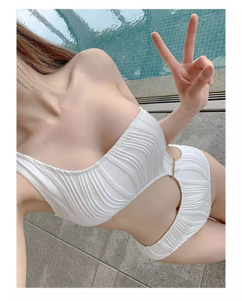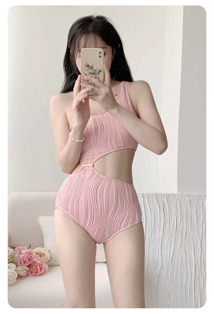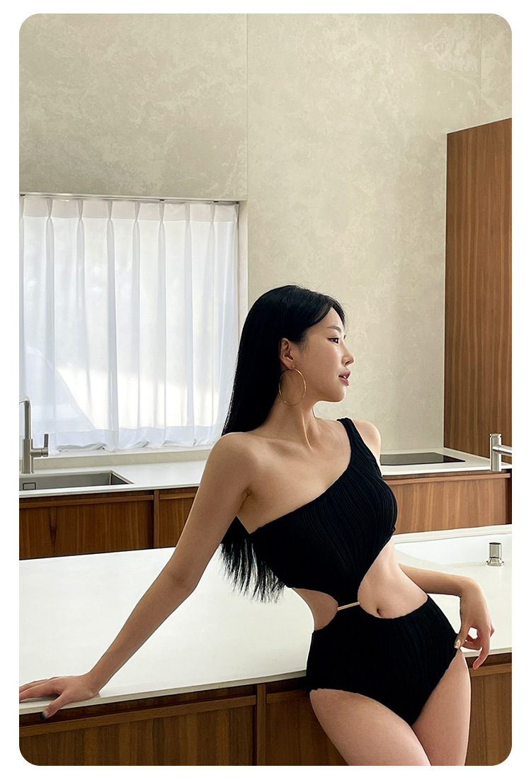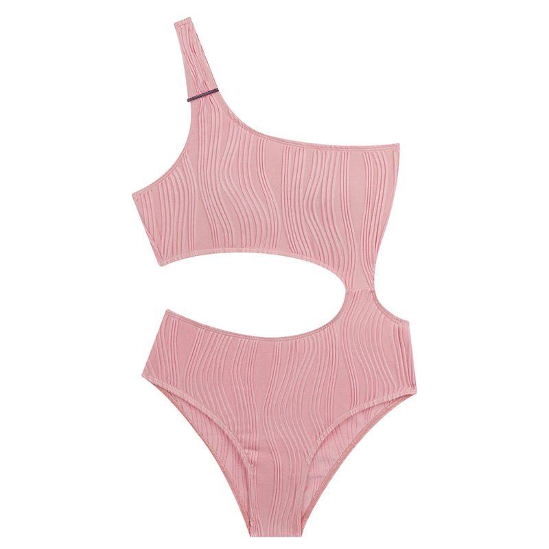 웨이브 패턴 원 숄더 수영복 여성 섹시 노출 허리 Ins 인터넷 인기 휴가 하이 엔드 수영복 온천스토어 가기