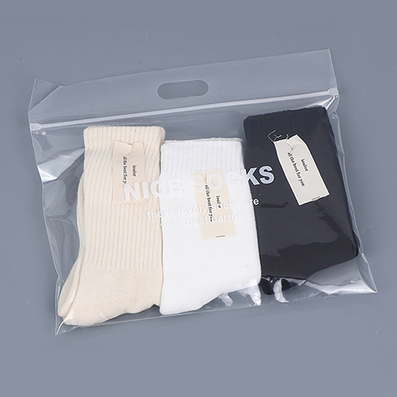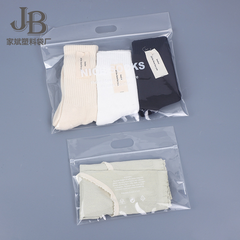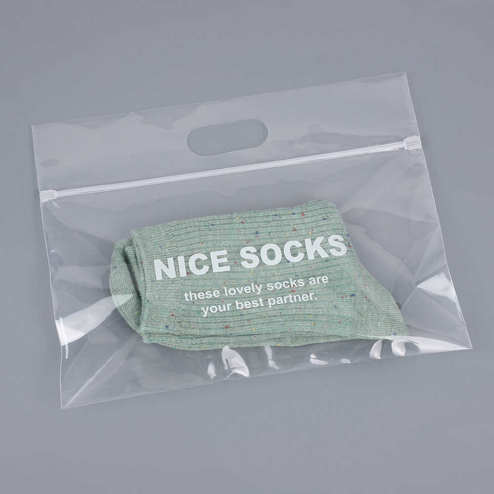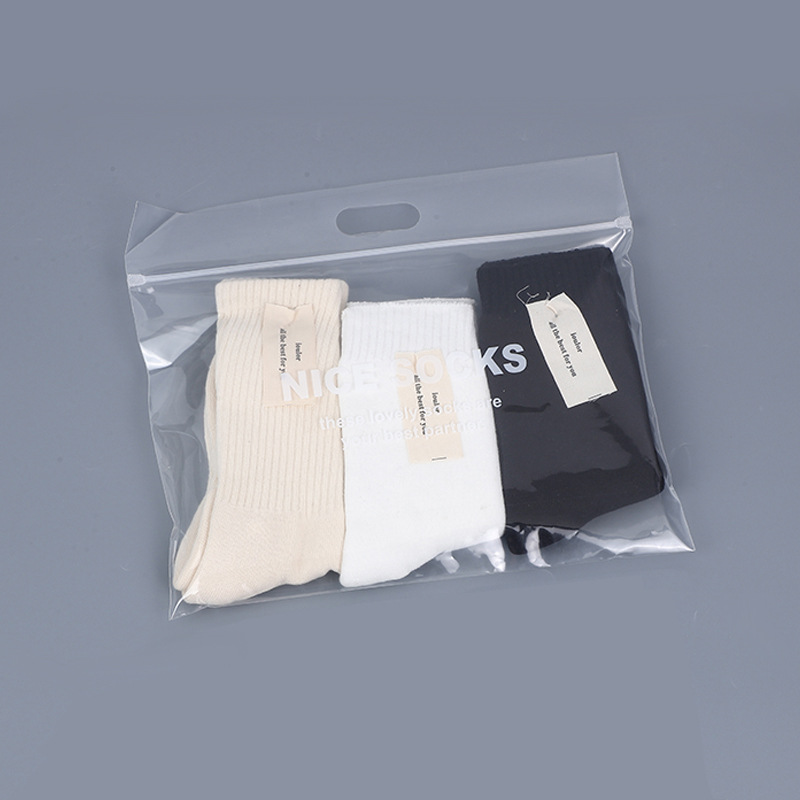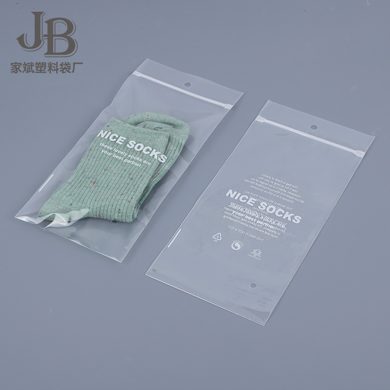 재고 pe 양말 싱글 및 더블 포장 가방 남녀 양말 투명 휴대용 지퍼 독립적 인 교수형 구멍 자체 밀봉 가방 고급 로고