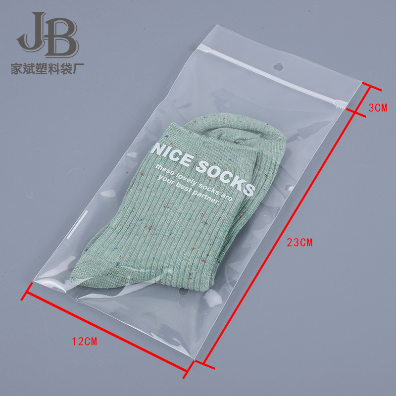 재고 pe 양말 싱글 및 더블 포장 가방 남녀 양말 투명 휴대용 지퍼 독립적 인 교수형 구멍 자체 밀봉 가방 고급 로고스토어 가기
