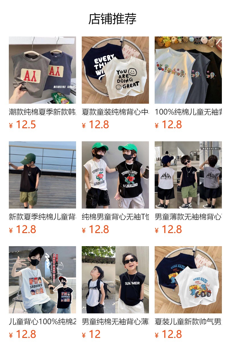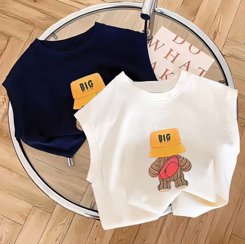 코튼 아동복 여름 어린이 코튼 조끼 어린이 만화 인쇄 민소매 티셔츠 올매치 탑 소년 소녀스토어 가기