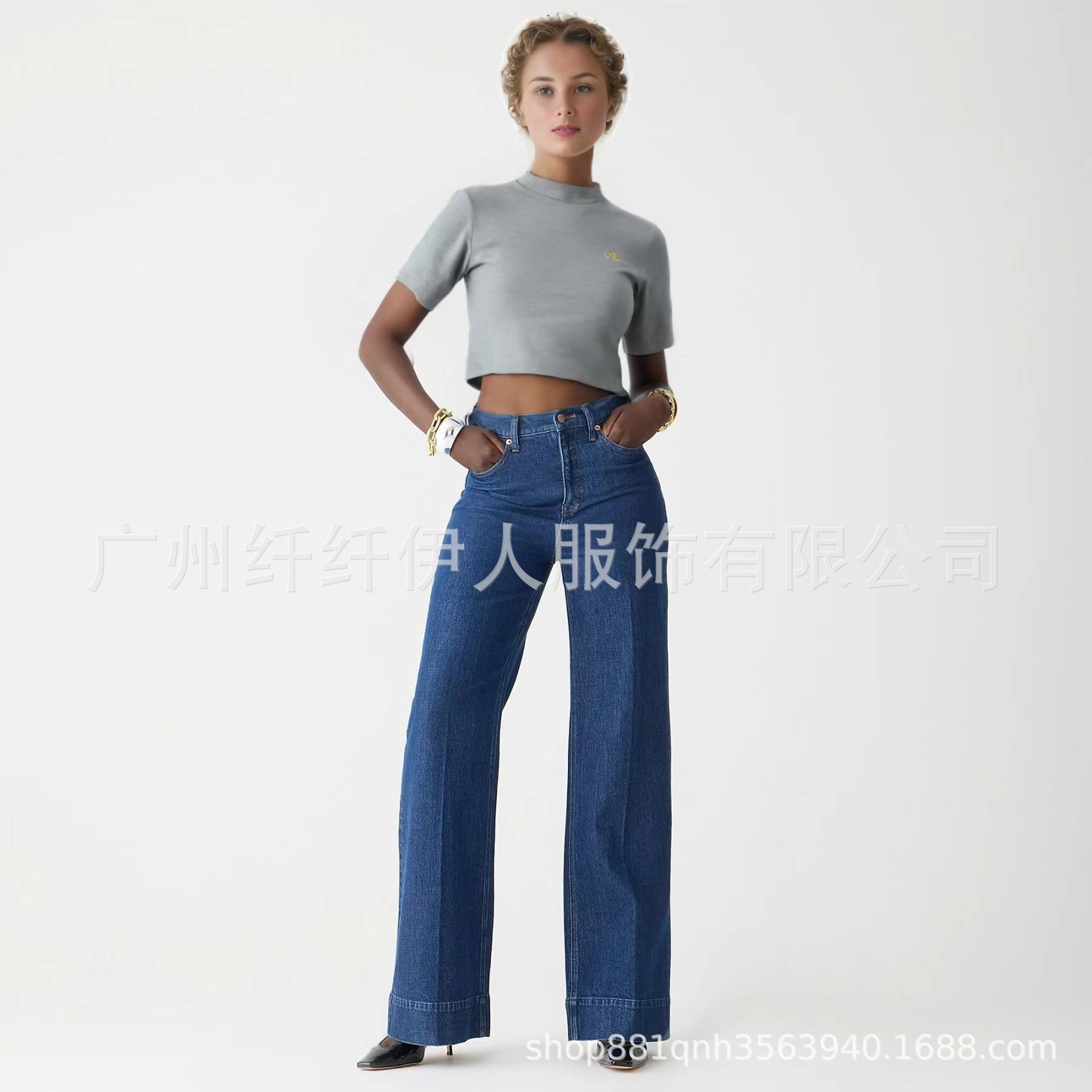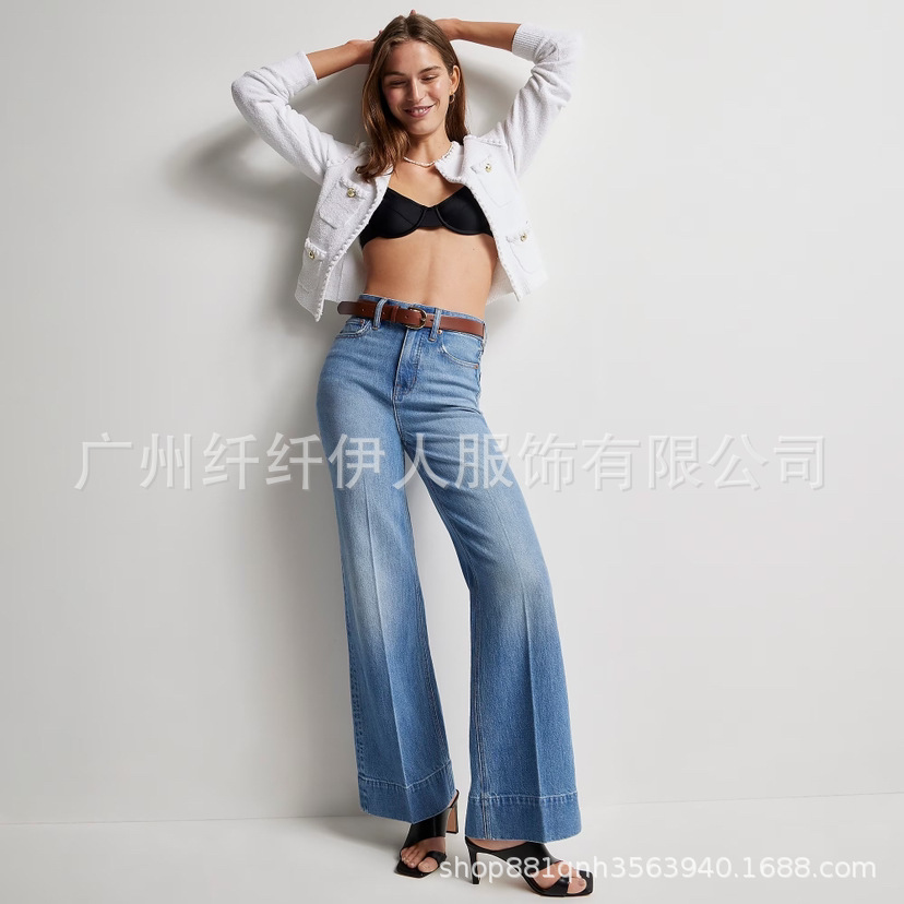 유럽과 미국의 넓은 다리 청바지 여성의 2024 새로운 아마존 국경 패션 탄성 느슨한 바지 청바지스토어 가기