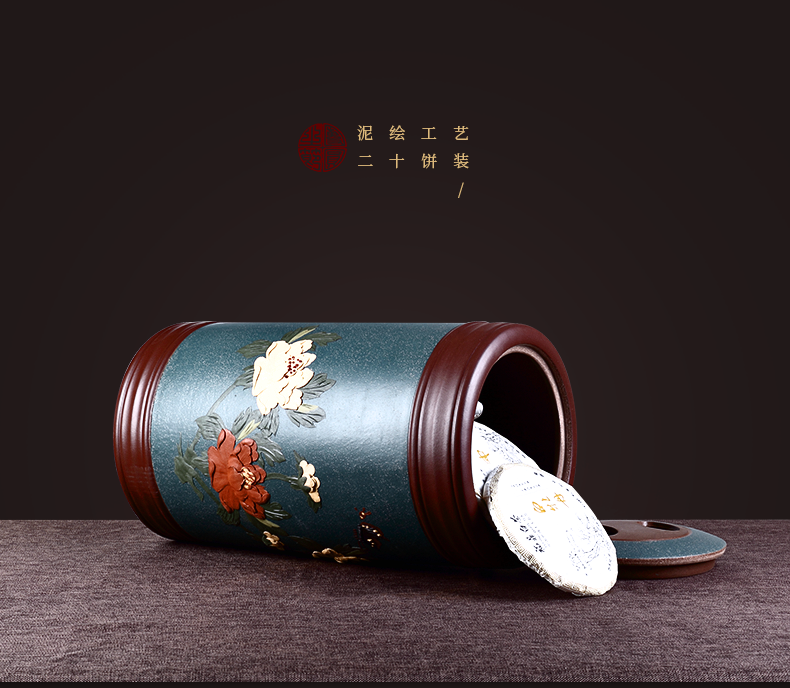 A5L Yixing 자주색 모래 Pu 'er 배럴 크기 저장 14 케이크 차 Pu 'er 차 냄비 진흙 페인트 매실, 난초, 대나무 및 국화스토어 가기