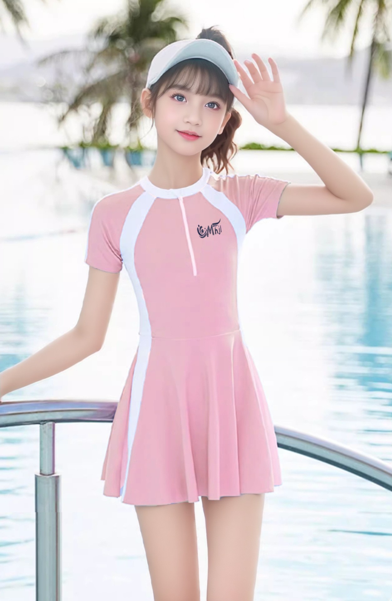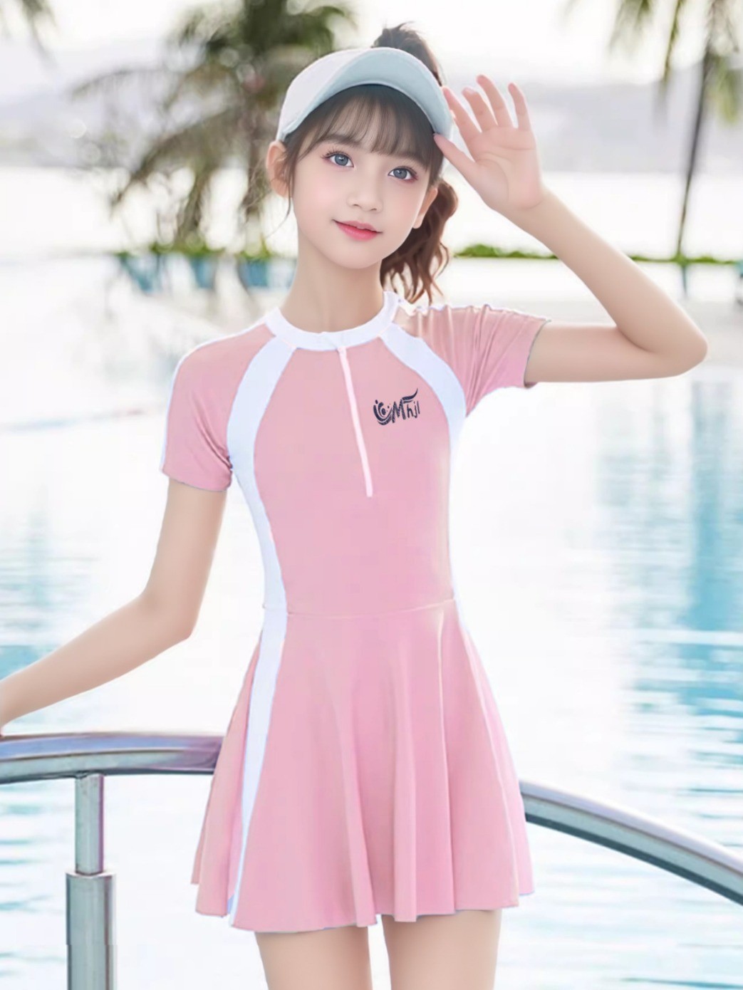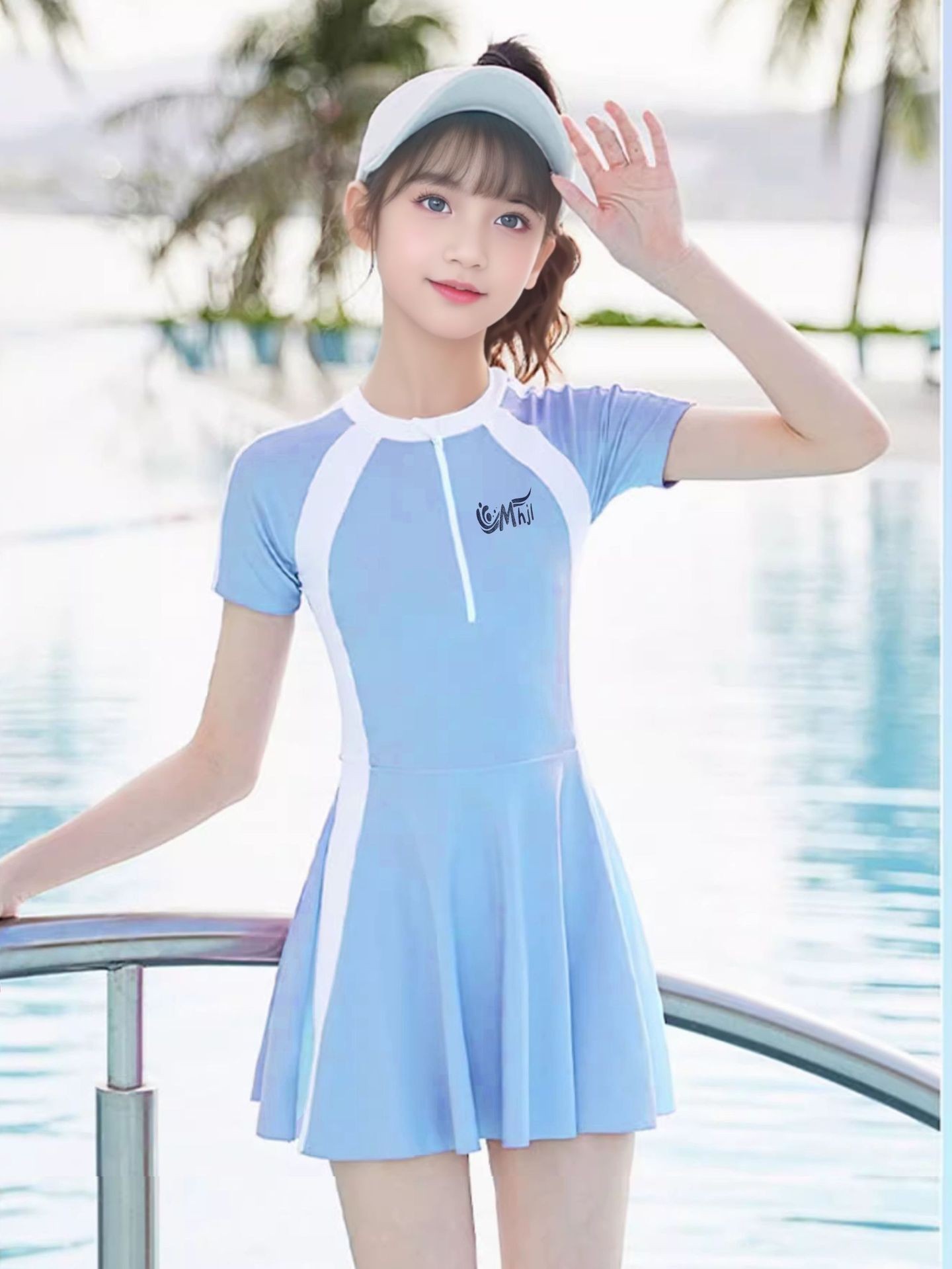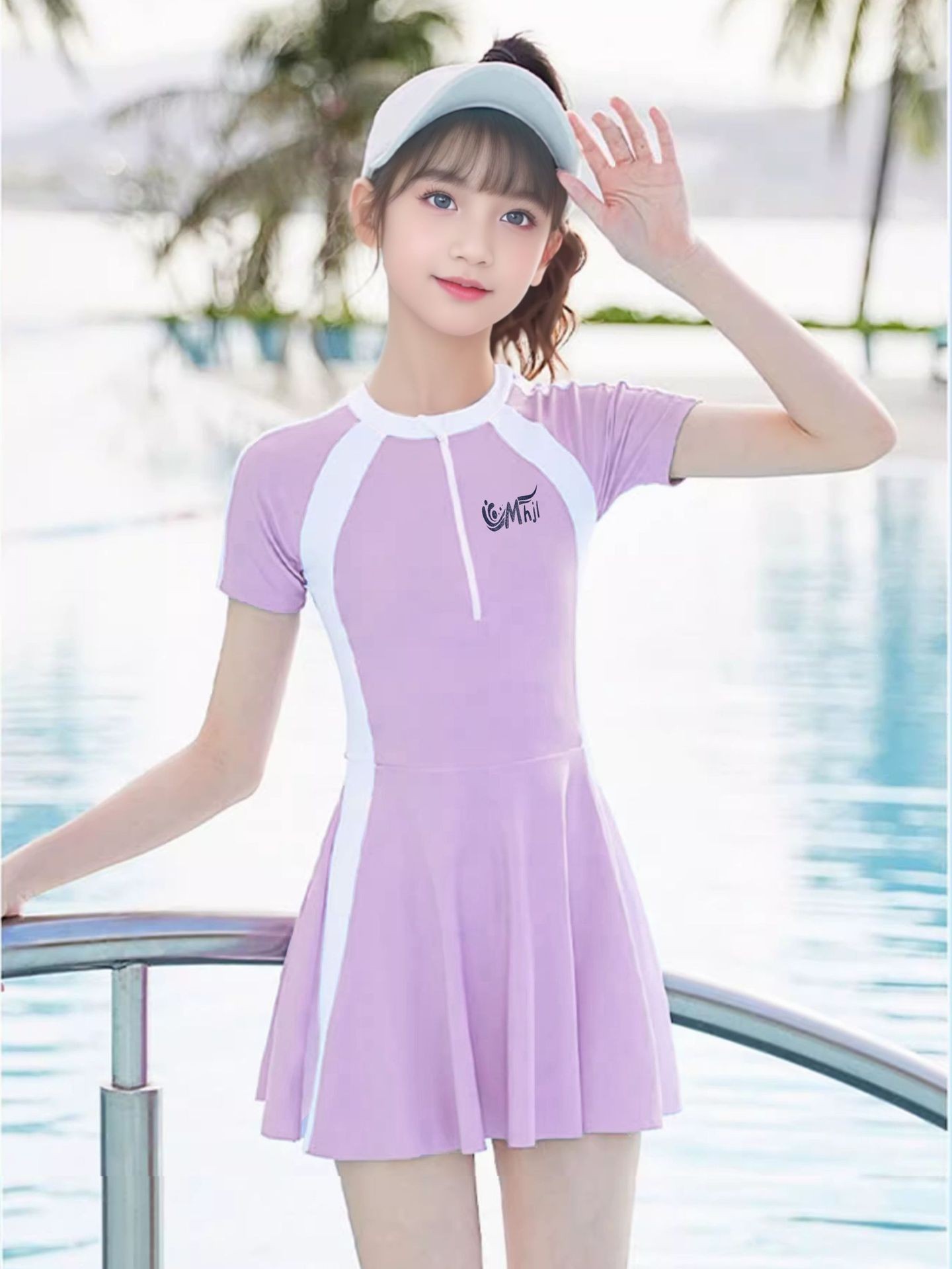 여자 수영복 2025 새로운 자외선 차단제 빠른 건조 수영복 중 · 대형 어린이 및 중학생을위한 가슴 패드 수영 장비
