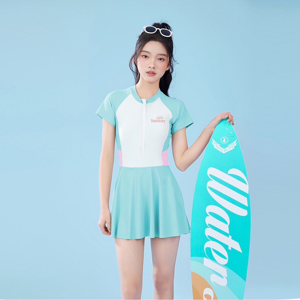 여자 수영복 2025 새로운 자외선 차단제 빠른 건조 수영복 중 · 대형 어린이 및 중학생을위한 가슴 패드 수영 장비스토어 가기