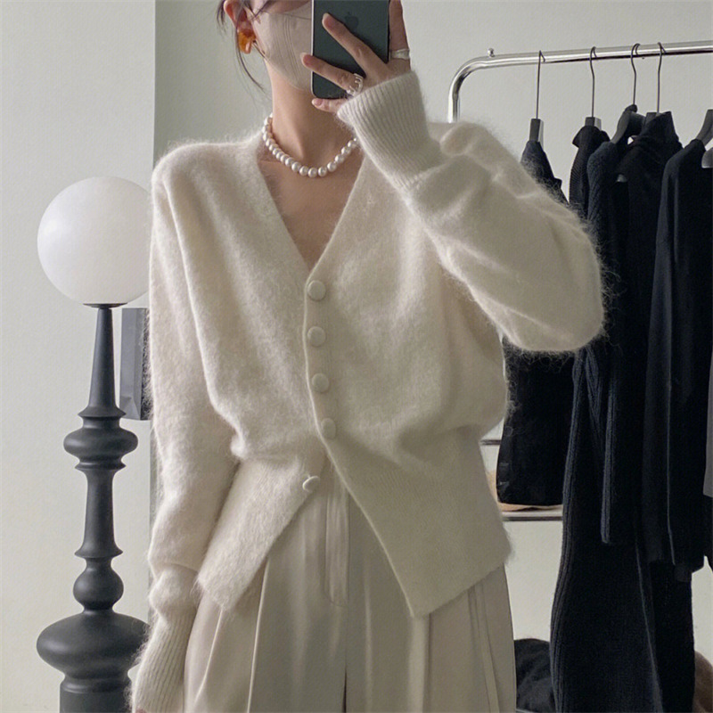 일본식 단색 스타일 니트 가디건 여성용 2025 가을 신상 루즈핏 브이넥 캐주얼 허리 조임 스웨터 재킷스토어 가기