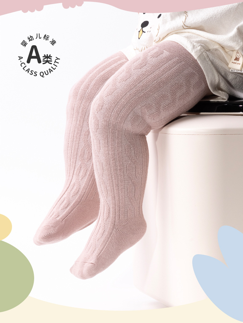 아기 여아 단색 팬티스타킹 봄 가을 세로 줄무늬 이중 바늘 유아용 레깅스