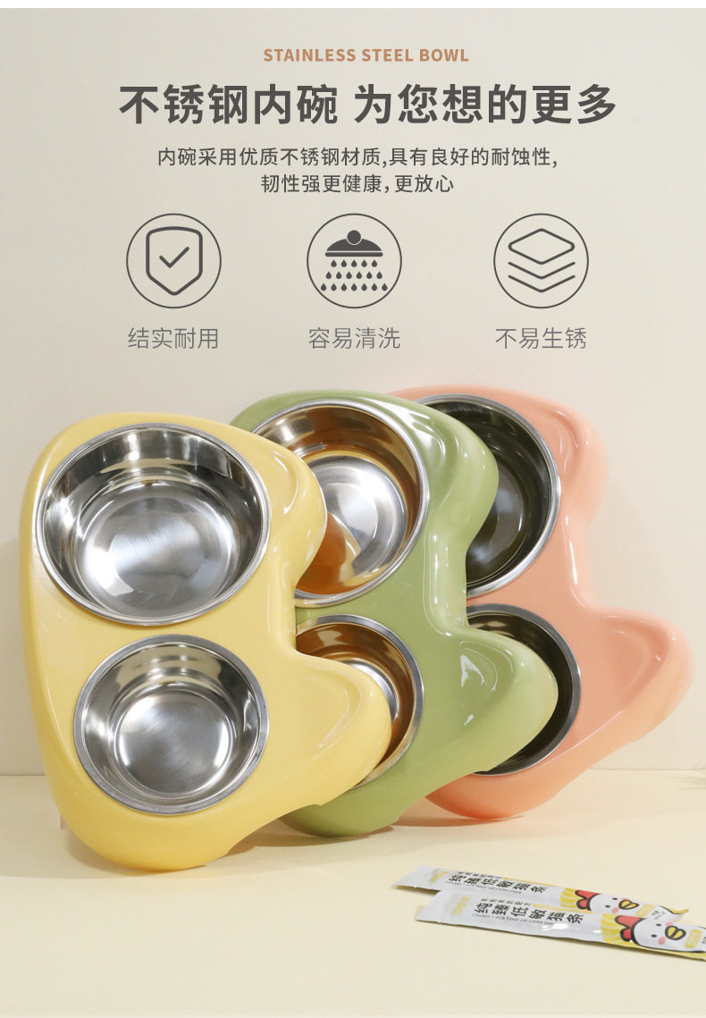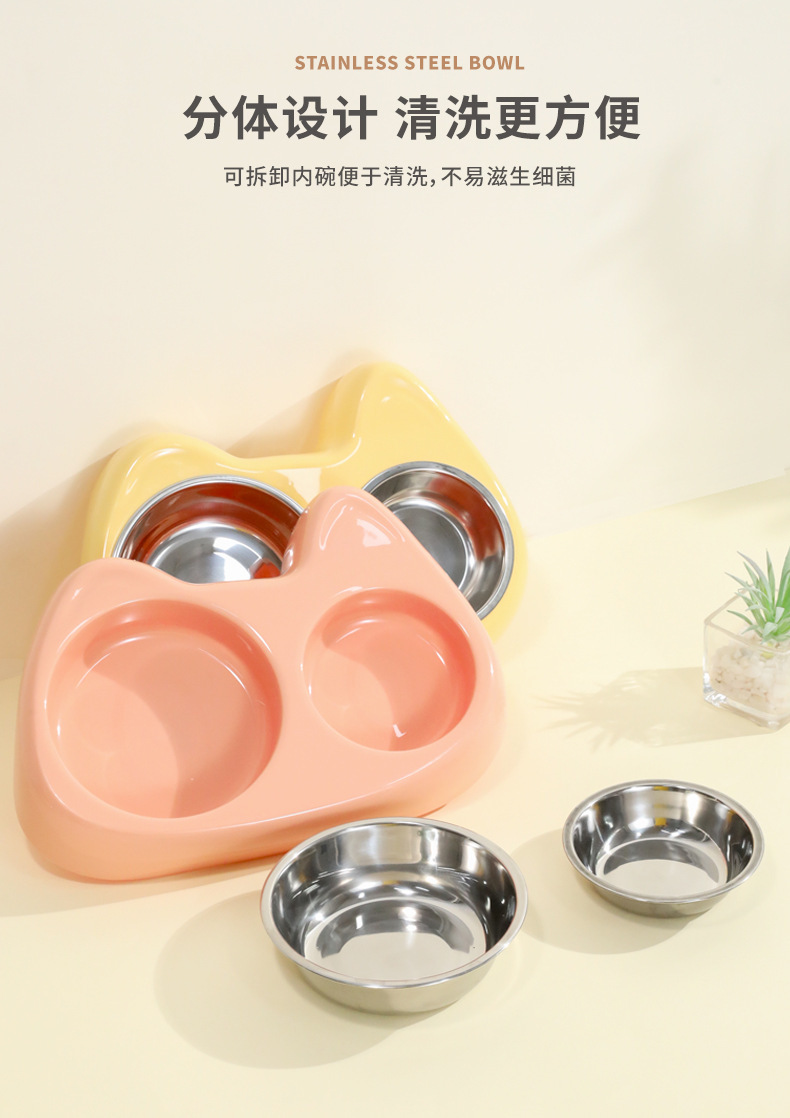 고양이 스테인레스 스틸 그릇 플라스틱 베이스 크고 작은 직경 비 슬립 새끼 고양이 테디 스테인레스 스틸 식품 그릇 애완 동물 식품 기구