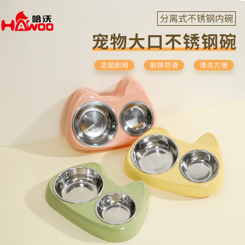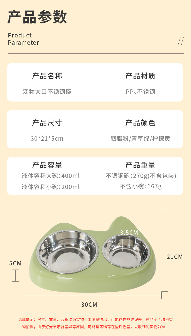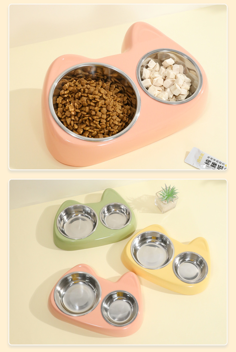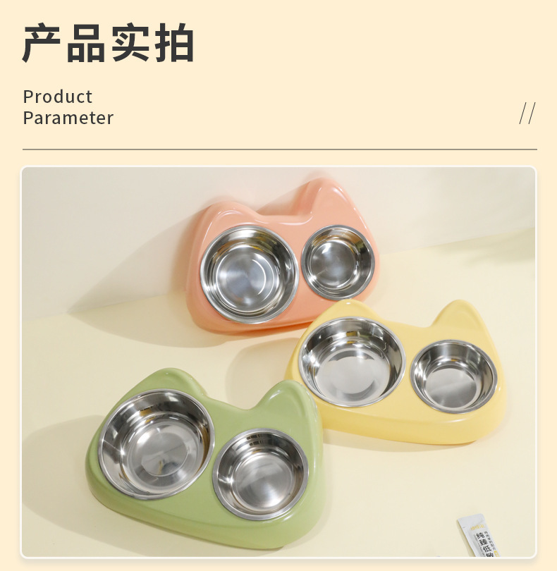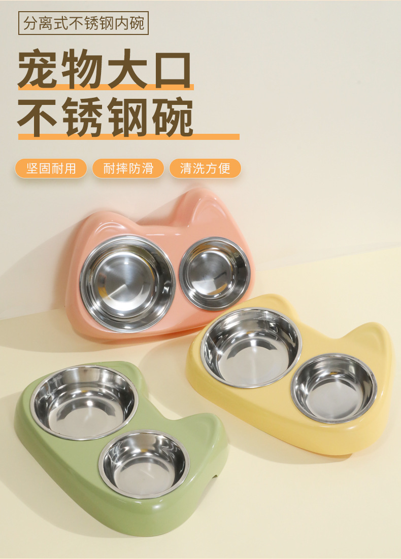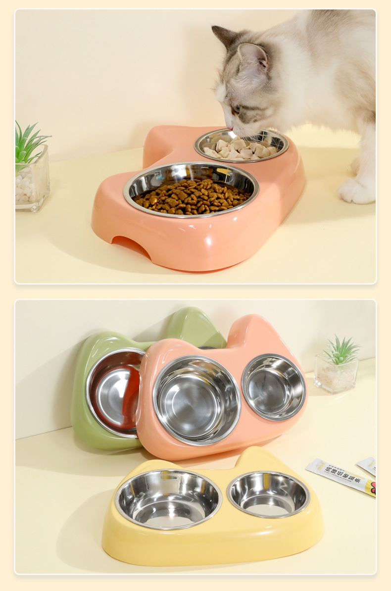 고양이 스테인레스 스틸 그릇 플라스틱 베이스 크고 작은 직경 비 슬립 새끼 고양이 테디 스테인레스 스틸 식품 그릇 애완 동물 식품 기구스토어 가기