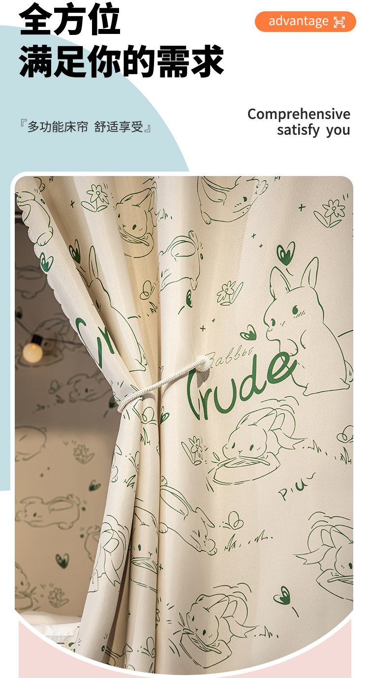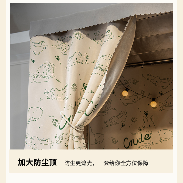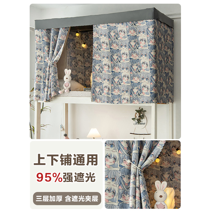A6L 학생 기숙사 물리적 음영 두꺼운 침대 커튼 상부 침실 여성 낮은 침실 귀여운 토끼 공주 바람 모기장스토어 가기