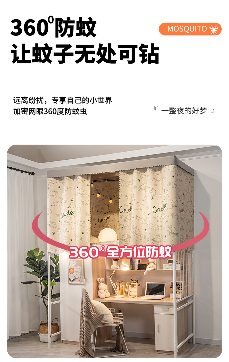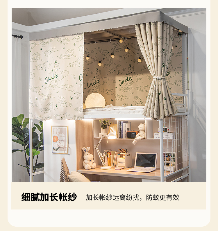 A6L 학생 기숙사 물리적 음영 두꺼운 침대 커튼 상부 침실 여성 낮은 침실 귀여운 토끼 공주 바람 모기장