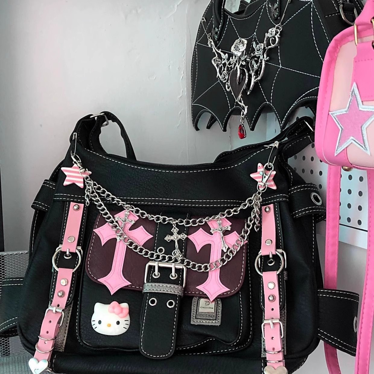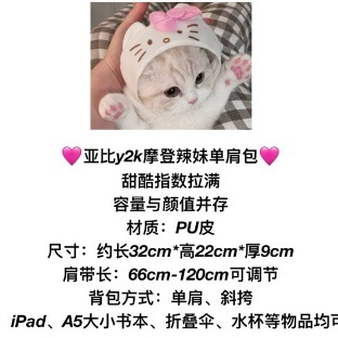 원래 틈새 하위 문화 밀레니엄 스파이스 소녀 핸드백 Y2K 멋진 소녀 키티 고양이 검은 핑크 대조 크로스 바디 백스토어 가기