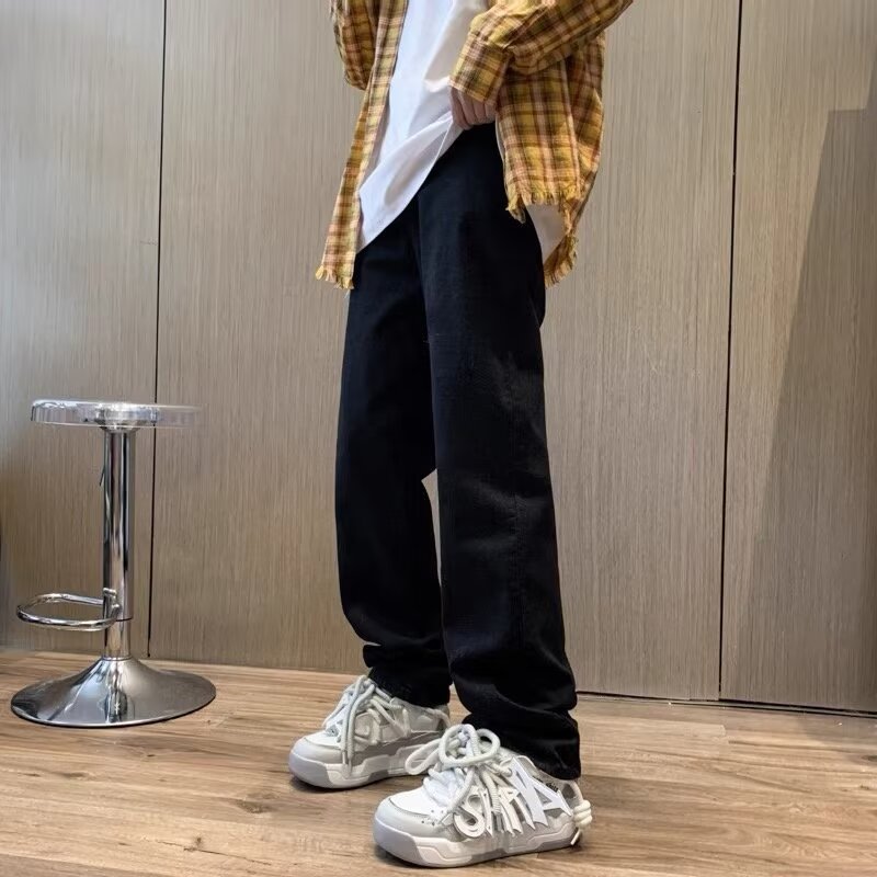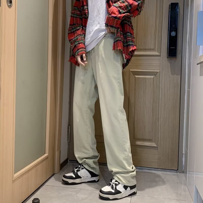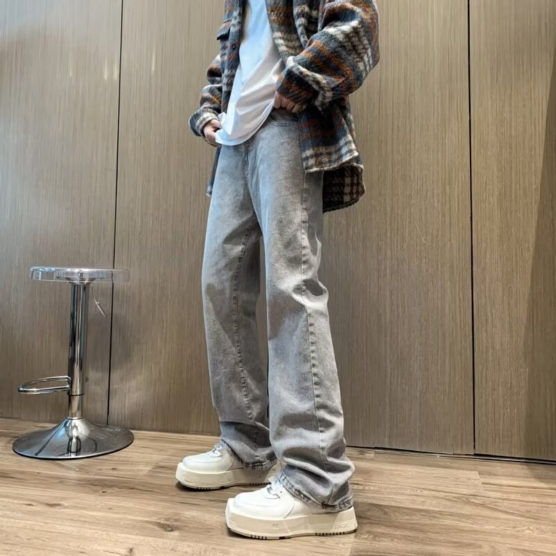 클린 핏 연기 그레이 청바지 남성 여름 슬림 핏 스트레이트 바지 아메리칸 스타일 레트로 바이브 캐주얼 바지스토어 가기