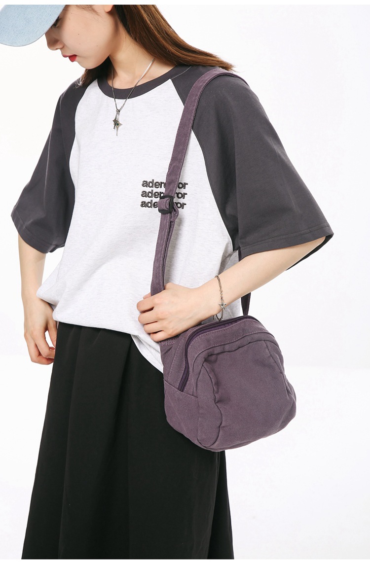 씻은 캔버스 가방 여성의 2024 새로운 빈티지 어깨 가방 유행 간단한 크로스 바디 가방 학생 휴대 전화 가방 작은 가방