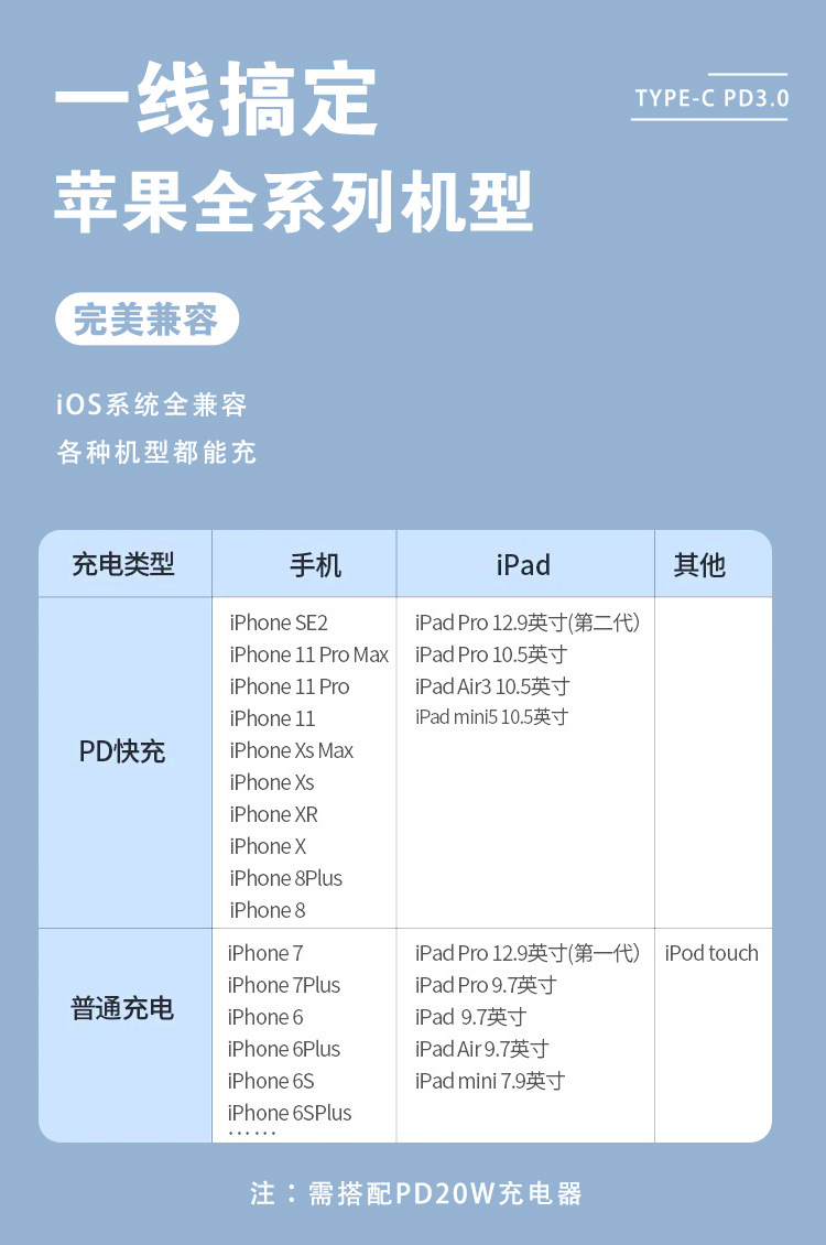 PD20W 빠른 충전 데이터 라인 2 미터 애플 iPhone14/13/12 휴대 전화 라인 조명 충전 라인