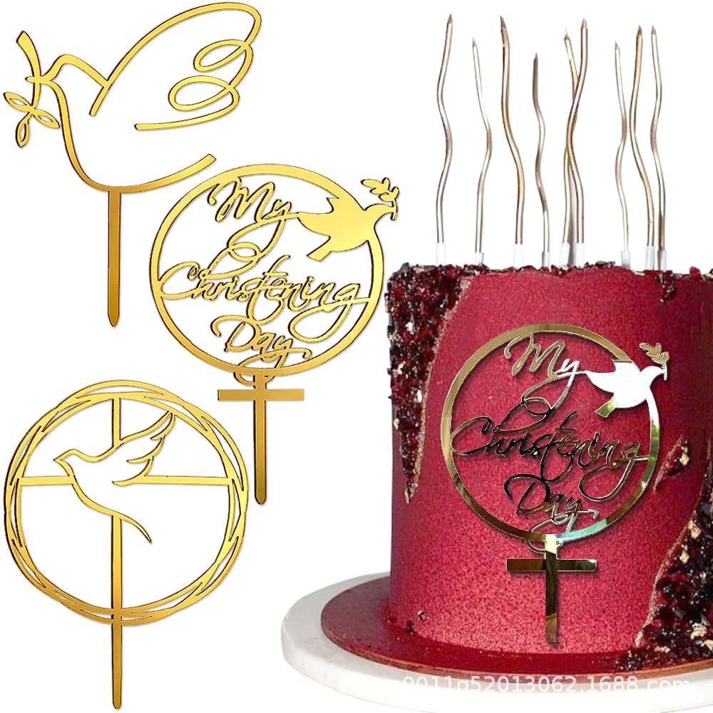 크로스 국경 황금 크로스 케이크 장식 세례 아크릴 생일 성찬식 장식 베이비 샤워 컵 케이크스토어 가기