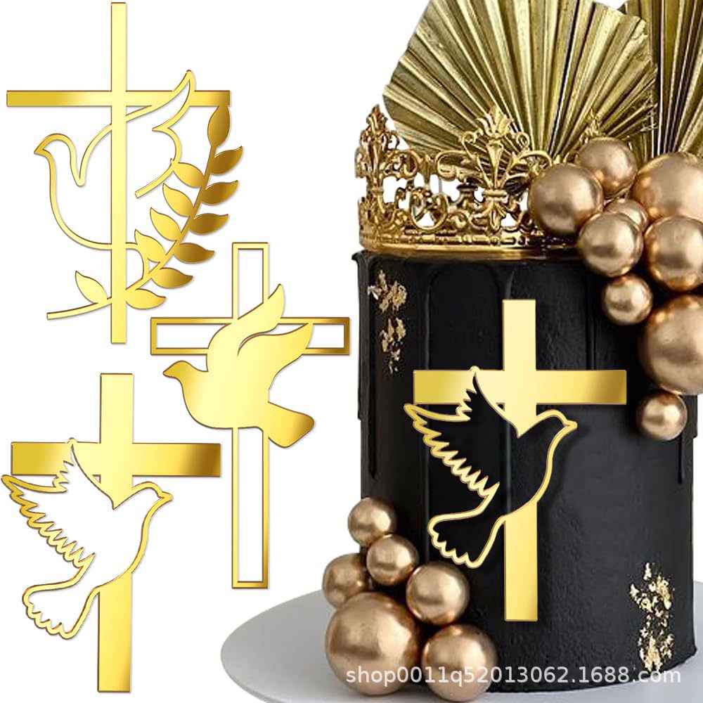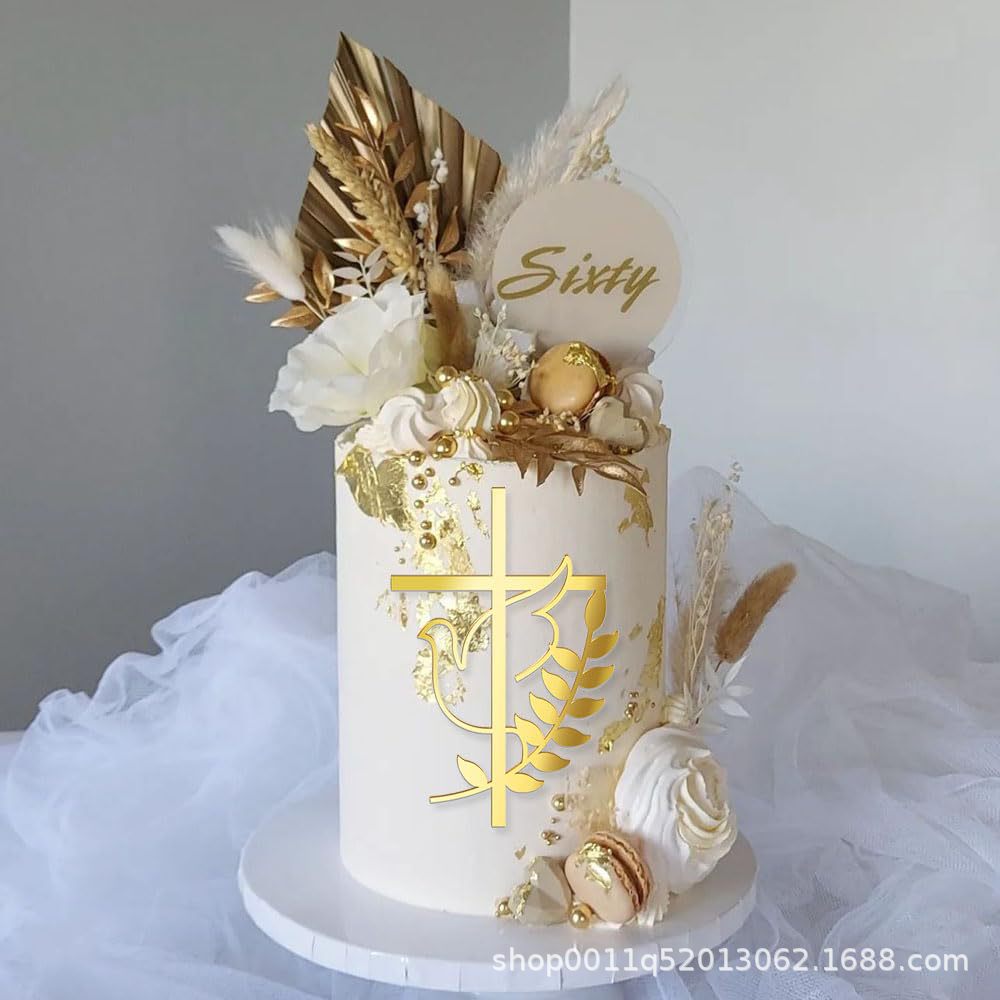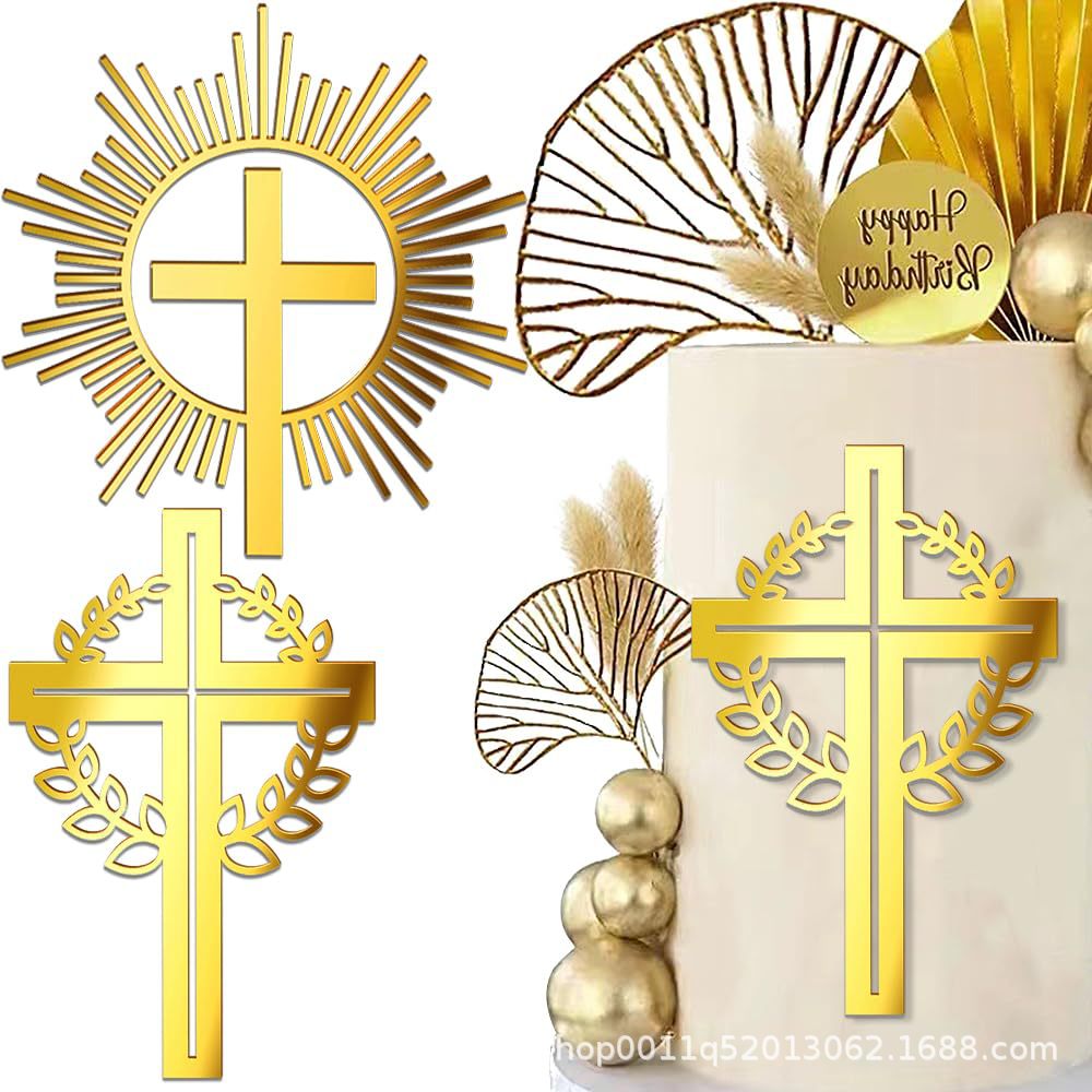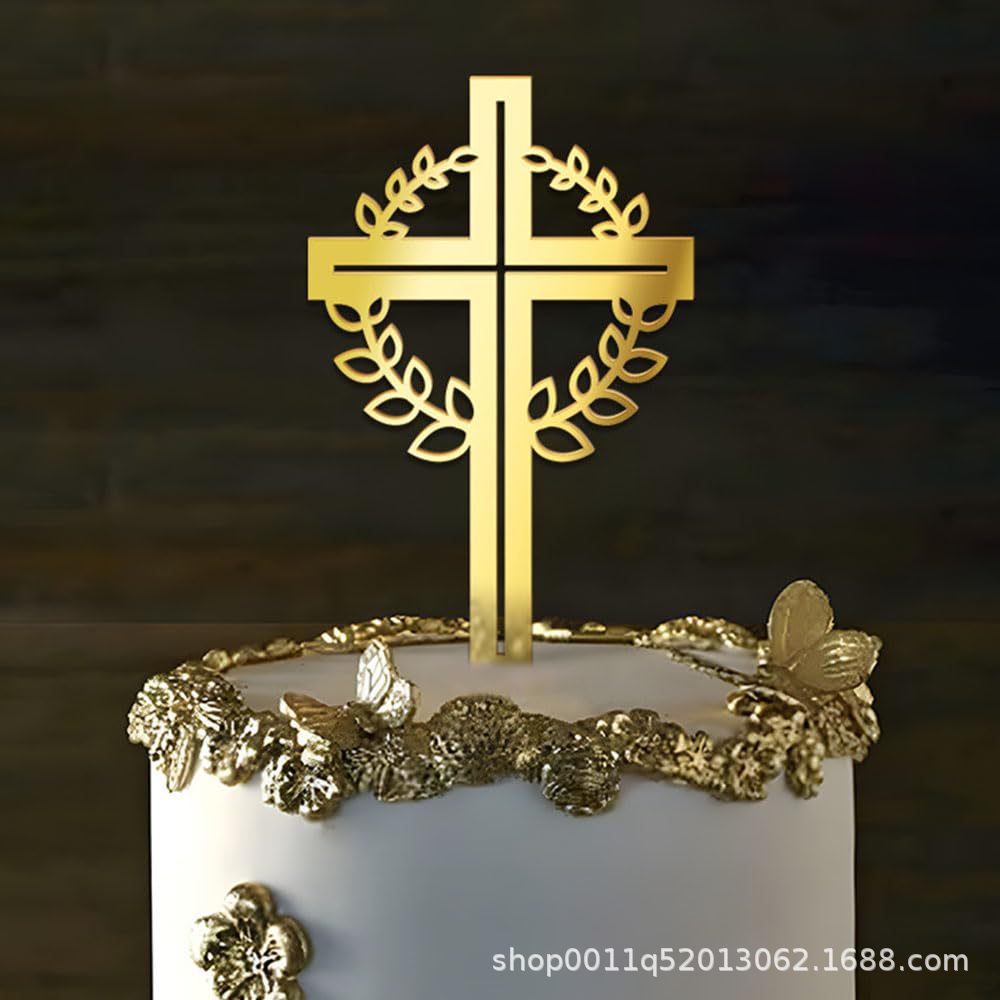 크로스 국경 황금 크로스 케이크 장식 세례 아크릴 생일 성찬식 장식 베이비 샤워 컵 케이크