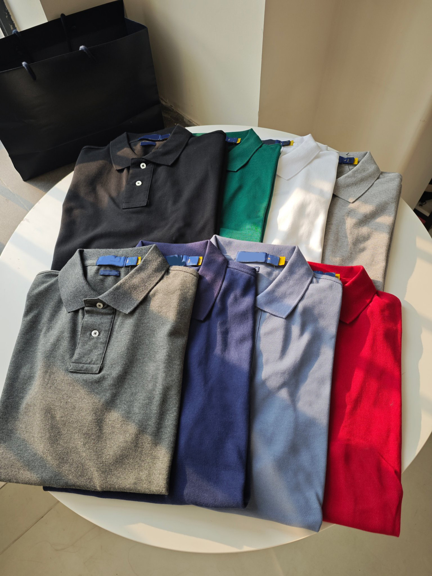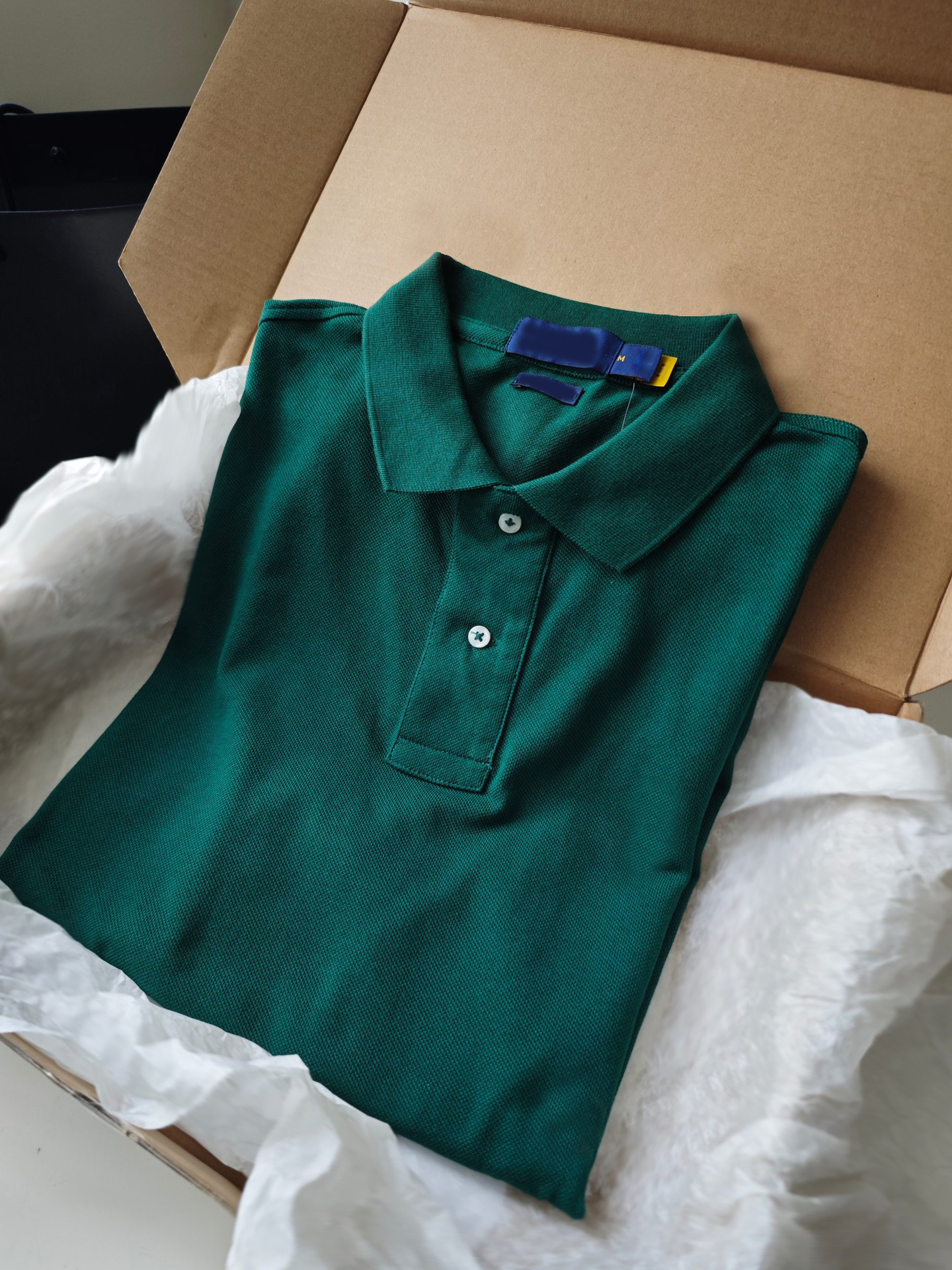 새로운 엔트리 럭셔리 비즈니스 퓨어 코튼 반팔 티셔츠 포니 자수 2 버튼 폴로 셔츠 남녀 최고 통근자스토어 가기