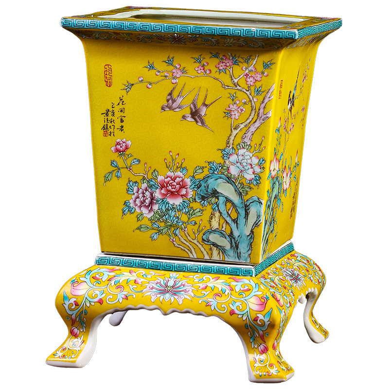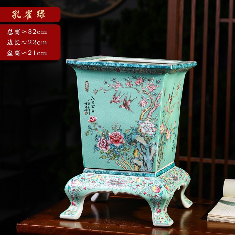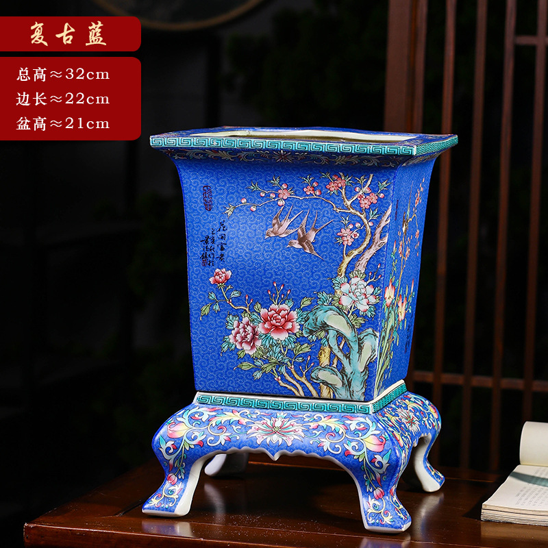 Jingdezhen 세라믹 손으로 그린 사중주 새로운 중국 스타일 높은 손으로 그린 파란색과 흰색 도자기 꽃 냄비 Kirin Luohan 소나무 분재 난초스토어 가기