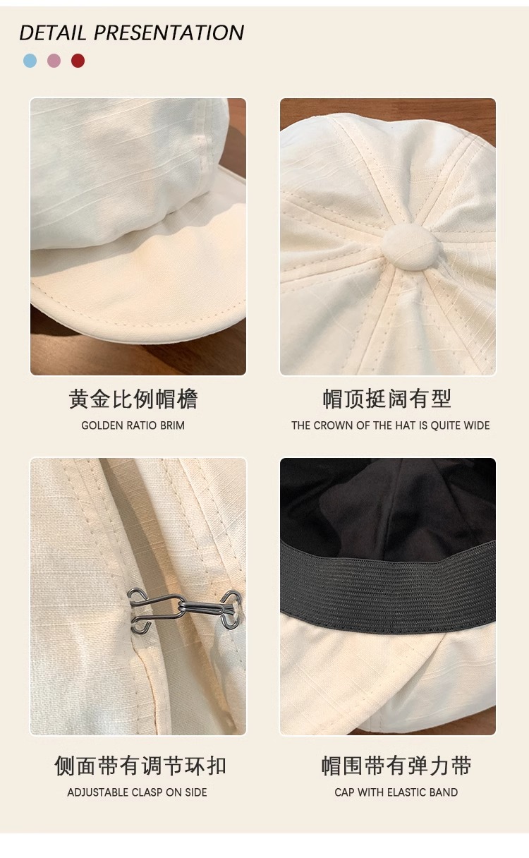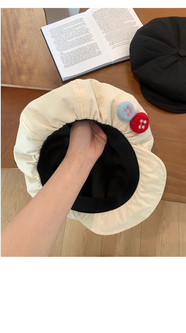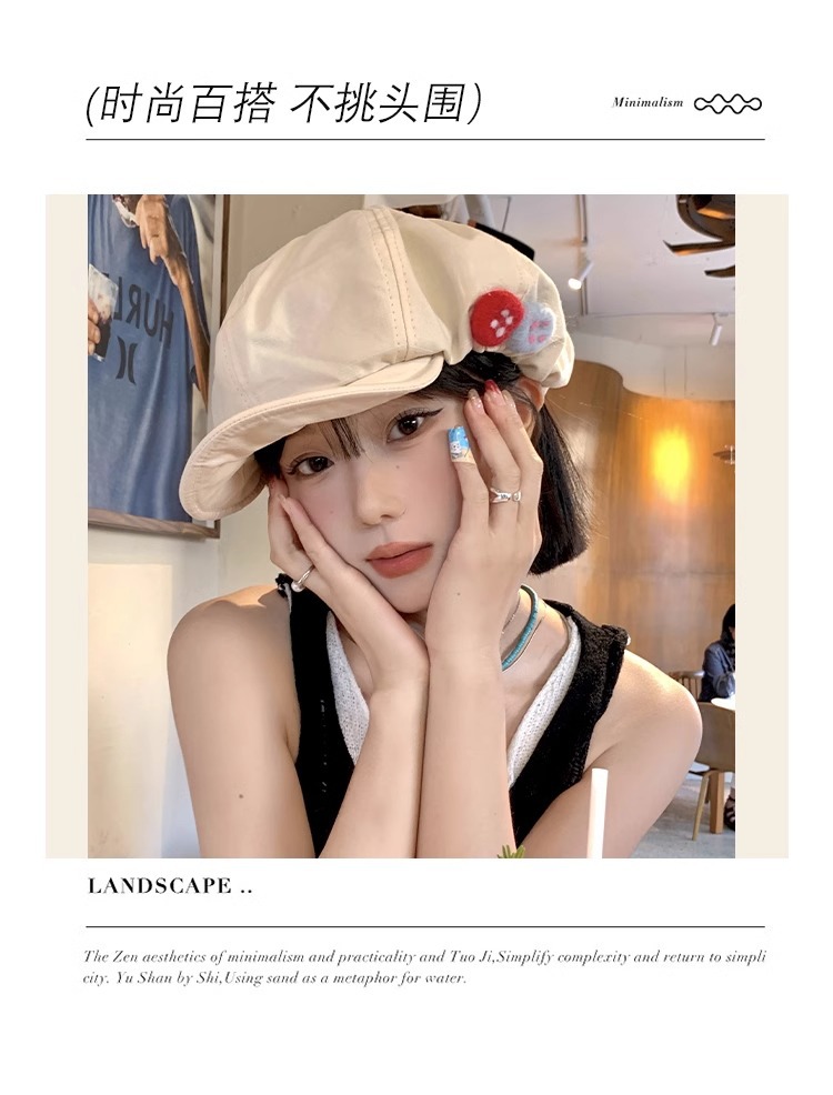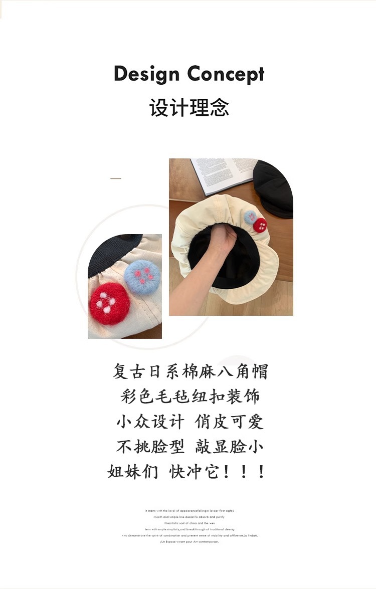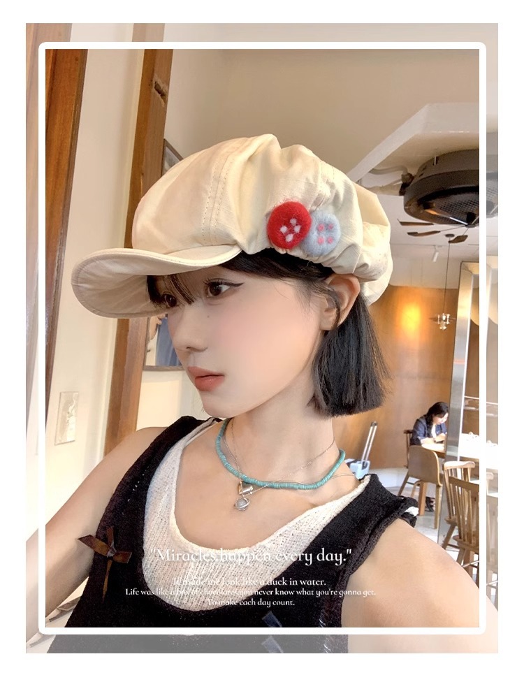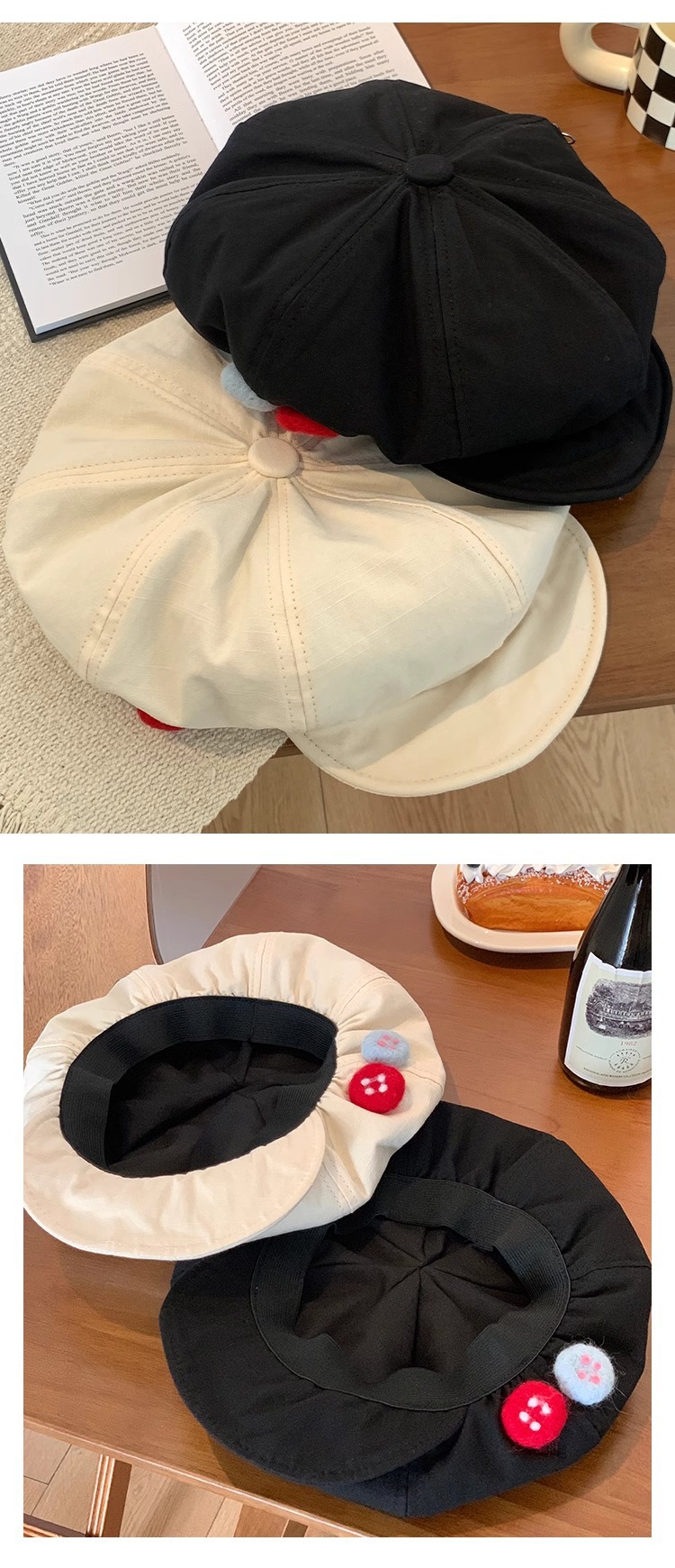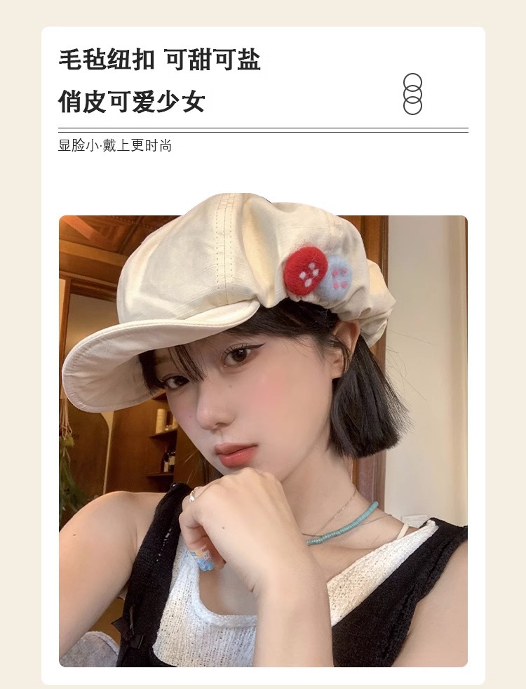 일본 빈티지 코튼 및 리넨 팔각형 모자 여성의 여름 다채로운 펠트 버튼 페인터 모자 비대칭 구름 베레스토어 가기