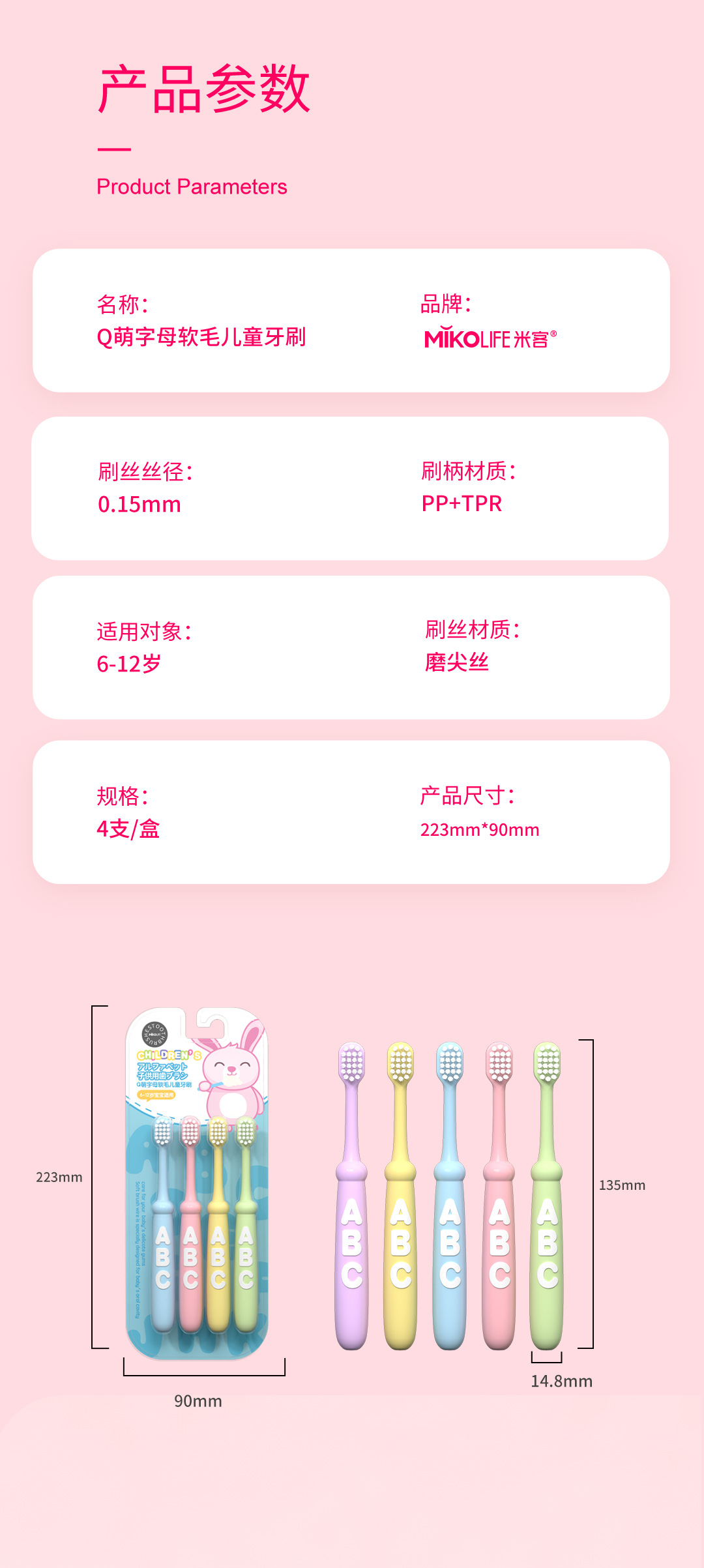 미케 어린이용 부드러운 칫솔 귀여운 글자 디자인 재미있는 모양 3-12세 아기 케어 청소 제조업체 도매