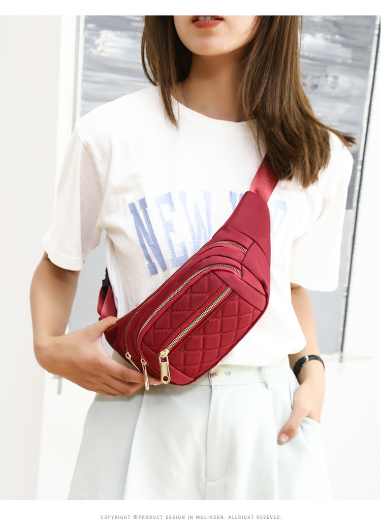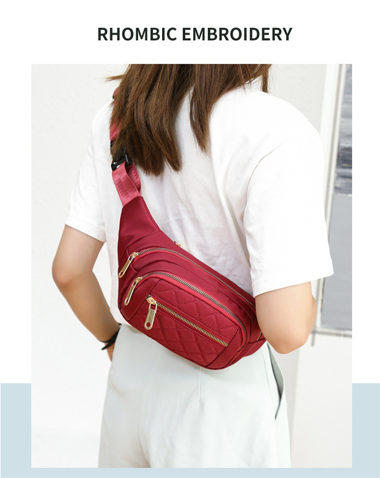 허리 가방 도매 인쇄 로고 간단한 올 매치 마름모꼴 자수 라인 여성 허리 가방 대용량 가슴 가방 크로스 바디 여성용 휴대 전화 가방