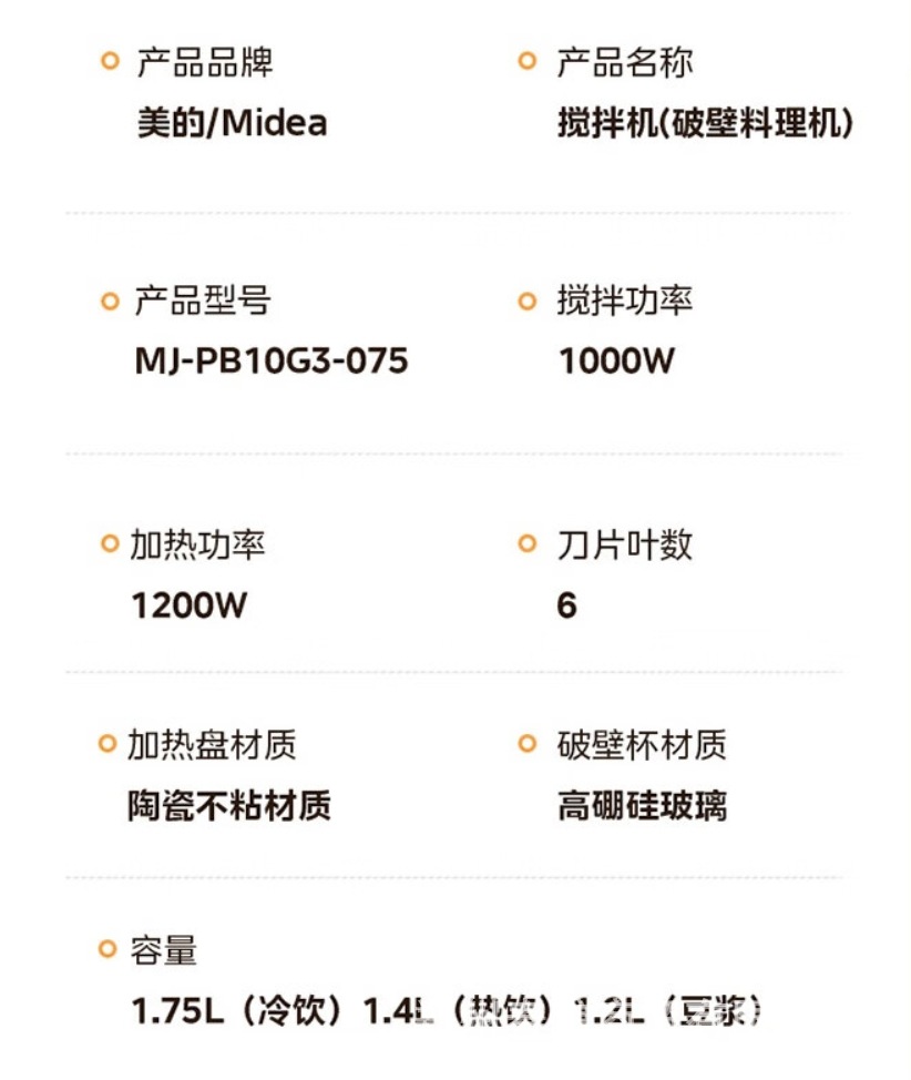 Midea 벽 속보 기계 1.75L 난방 예약 두유 기계 이동식 및 세척 가능한 Juicer 보충 식품 기계 MJ-PB10G3-075스토어 가기