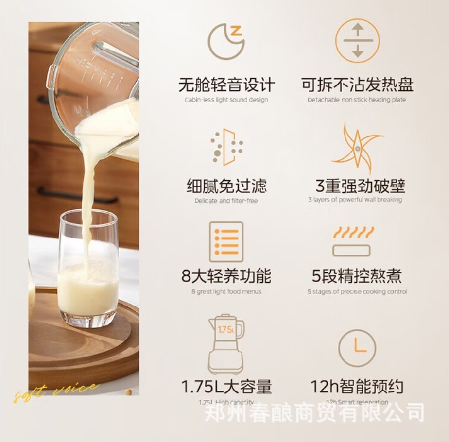 Midea 벽 속보 기계 1.75L 난방 예약 두유 기계 이동식 및 세척 가능한 Juicer 보충 식품 기계 MJ-PB10G3-075