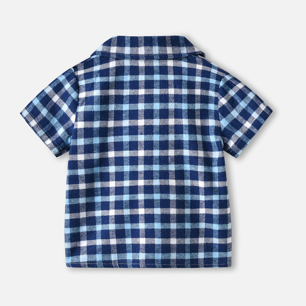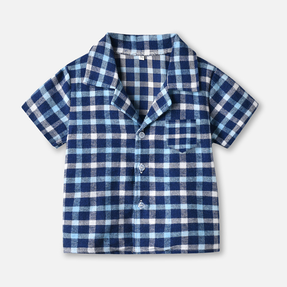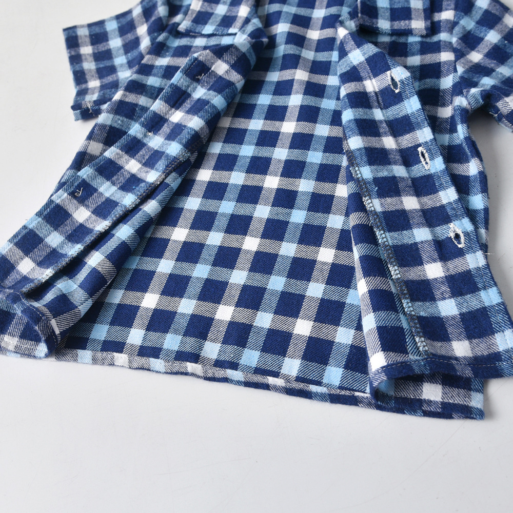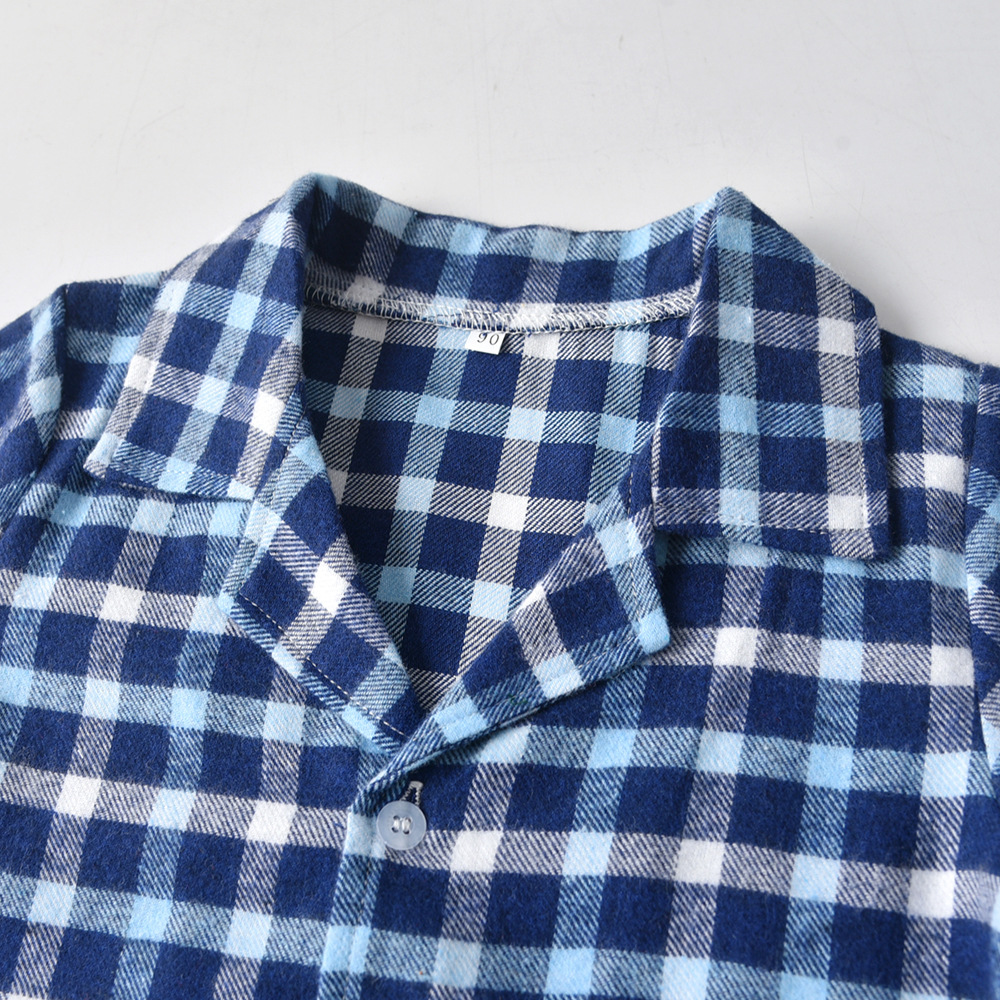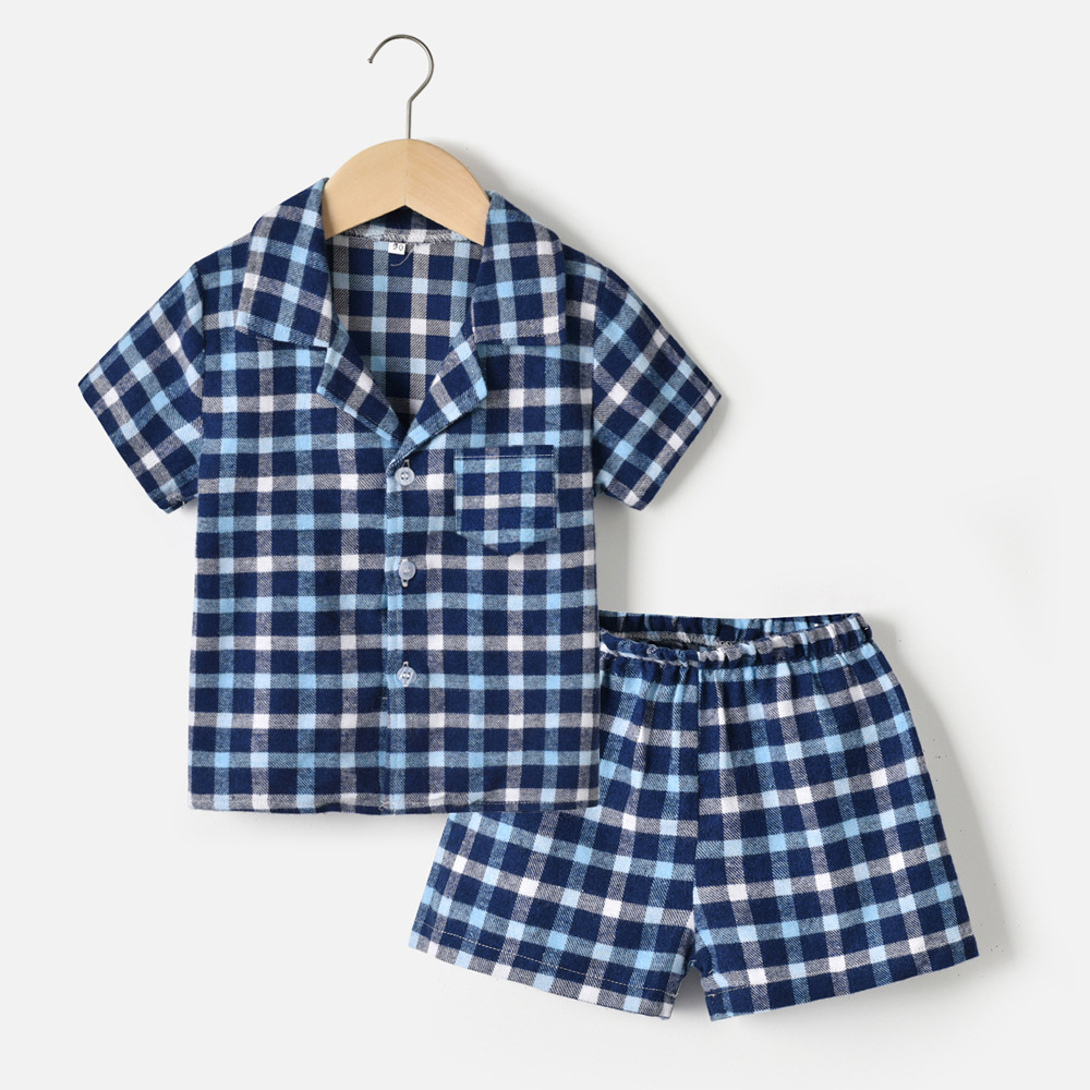 어린이 잠옷 소년의 봄과 가을 얇은 면 반팔 카디건 격자 무늬 잠옷 세트 소년의 아기 집 옷스토어 가기