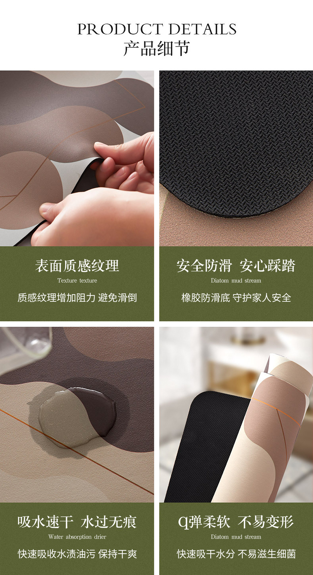 국경 간 잎 Diatom 진흙 매트 흡수성 먼지 방지 욕실 미끄럼 방지 매트 불규칙한 샤워 문 빠른 건조 발 매트스토어 가기