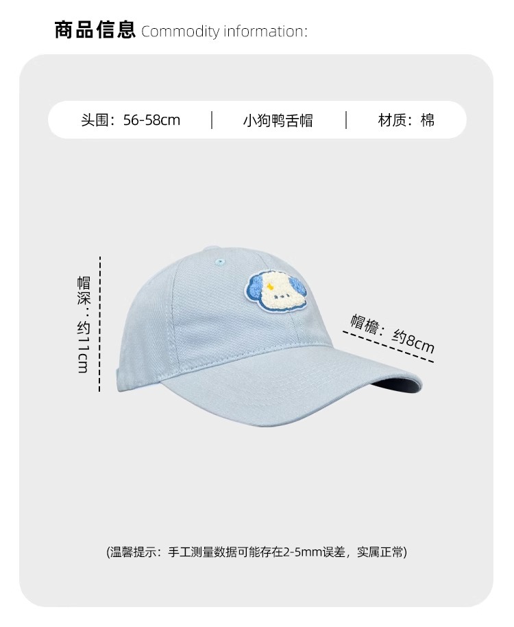 블루 강아지 야구 모자 여름 여성 일본 스타일 달콤한 귀여운 신선한 소프트 탑 학생 햇빛 얼굴 덮고있는 오리 혀 모자스토어 가기