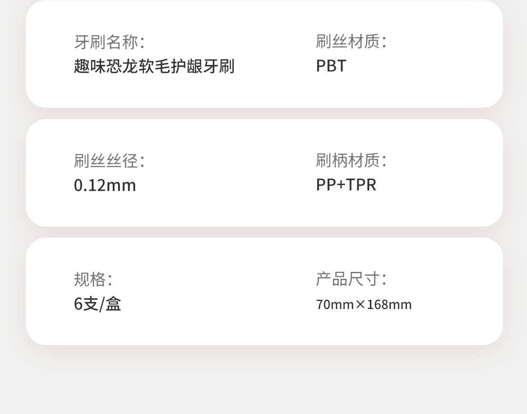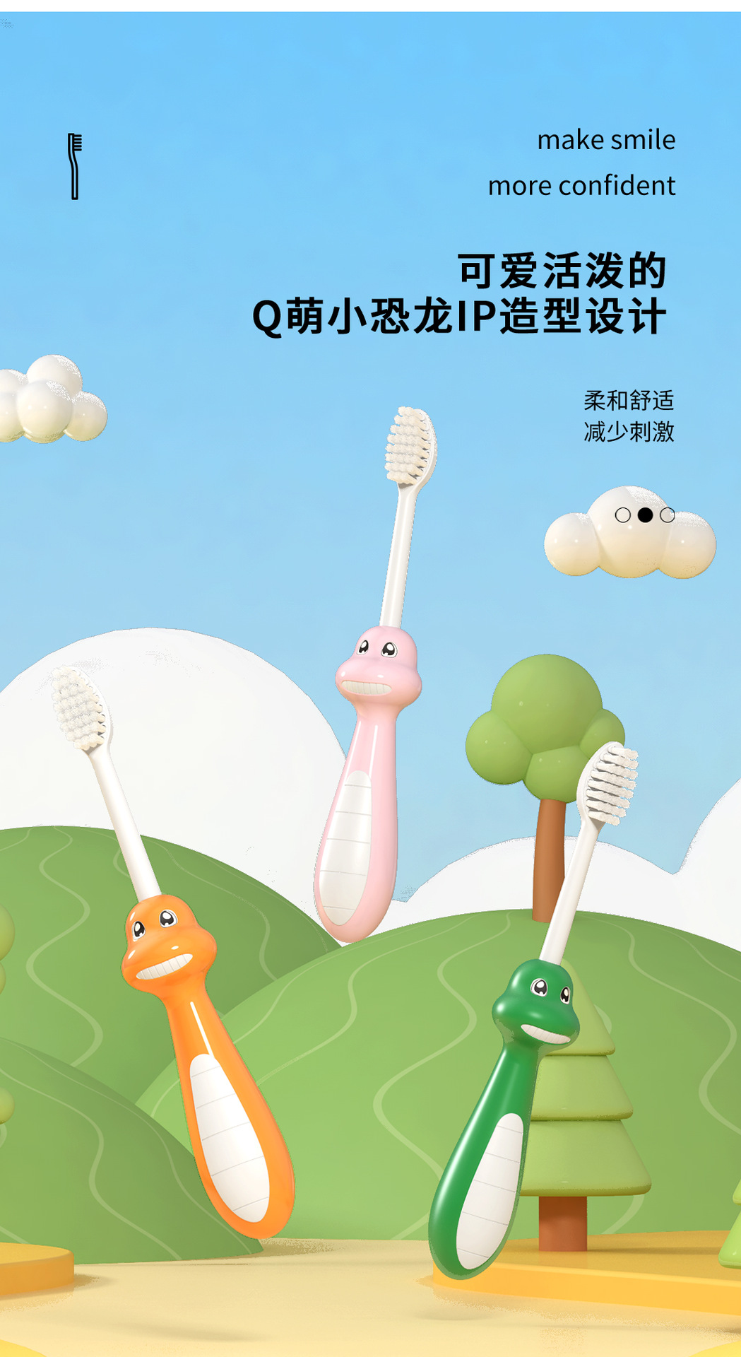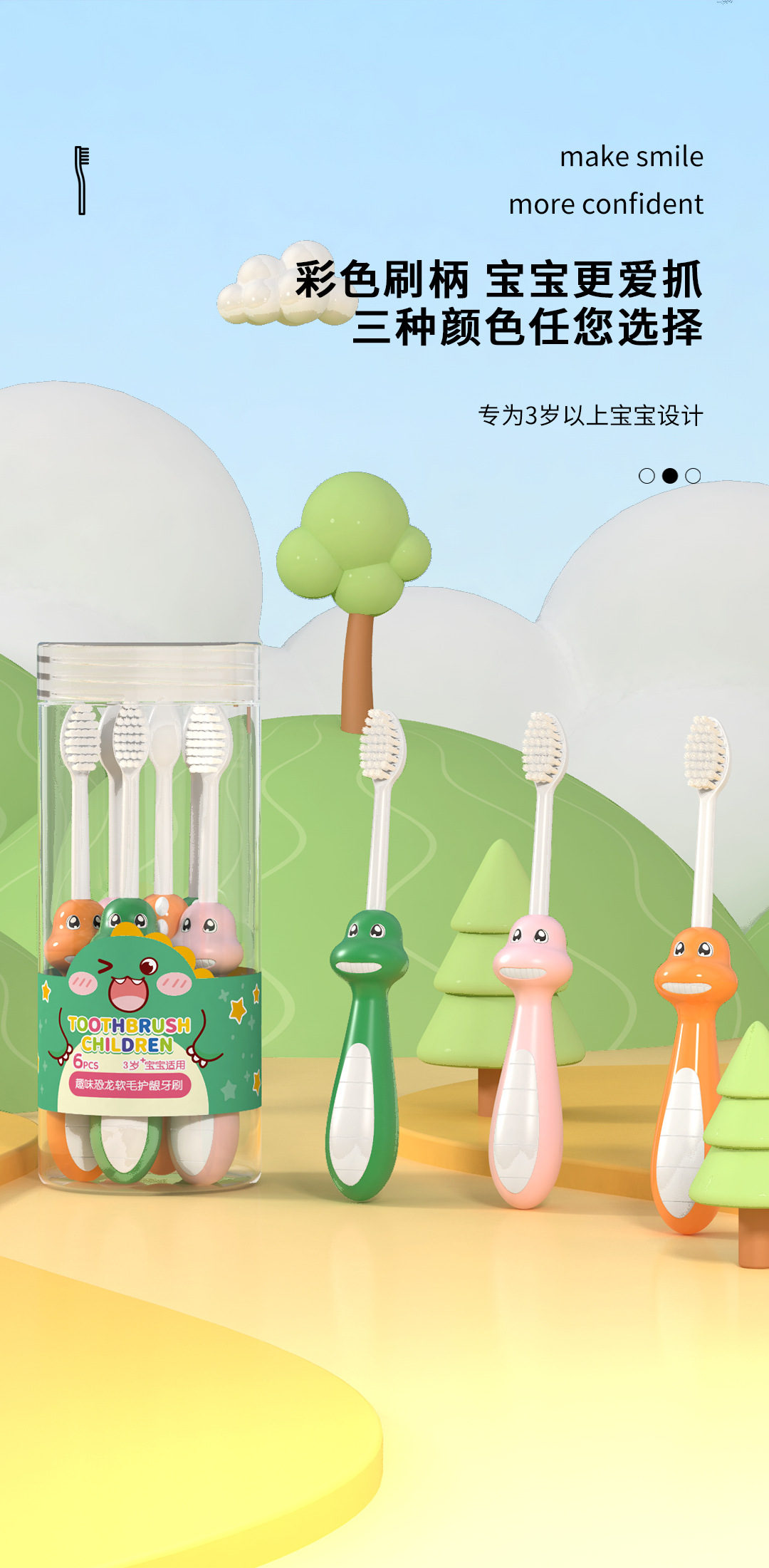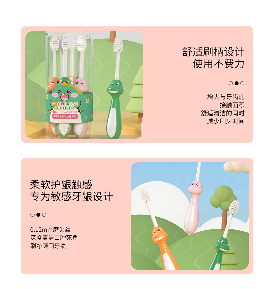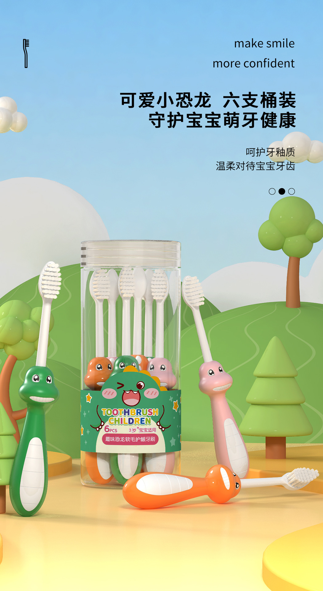 마이크 어린이 부드러운 칫솔 귀여운 작은 공룡 케어 껌 곡선 브러시 헤드 6 배럴 제조 업체 도매