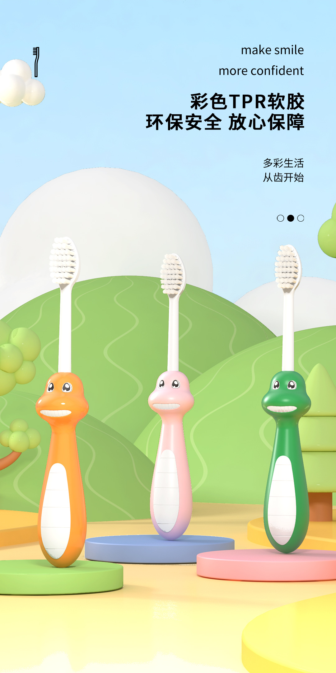 마이크 어린이 부드러운 칫솔 귀여운 작은 공룡 케어 껌 곡선 브러시 헤드 6 배럴 제조 업체 도매스토어 가기