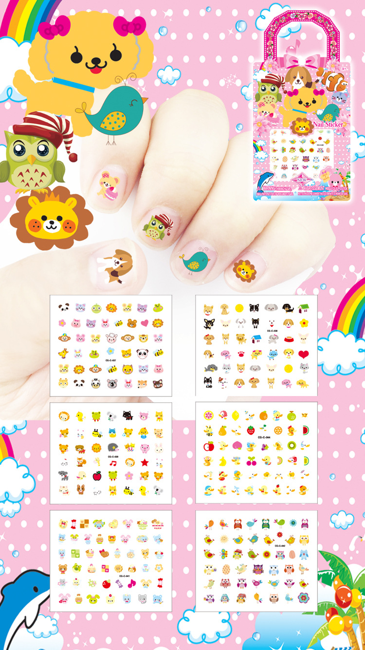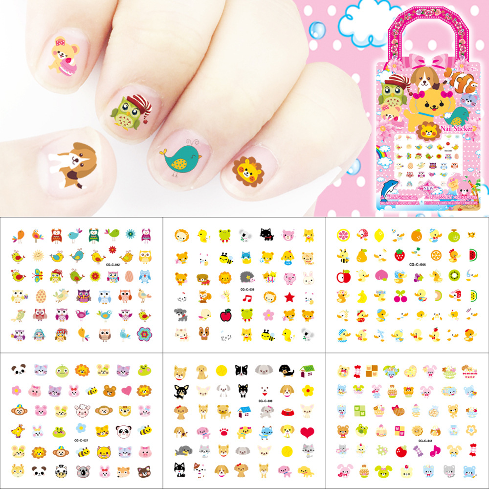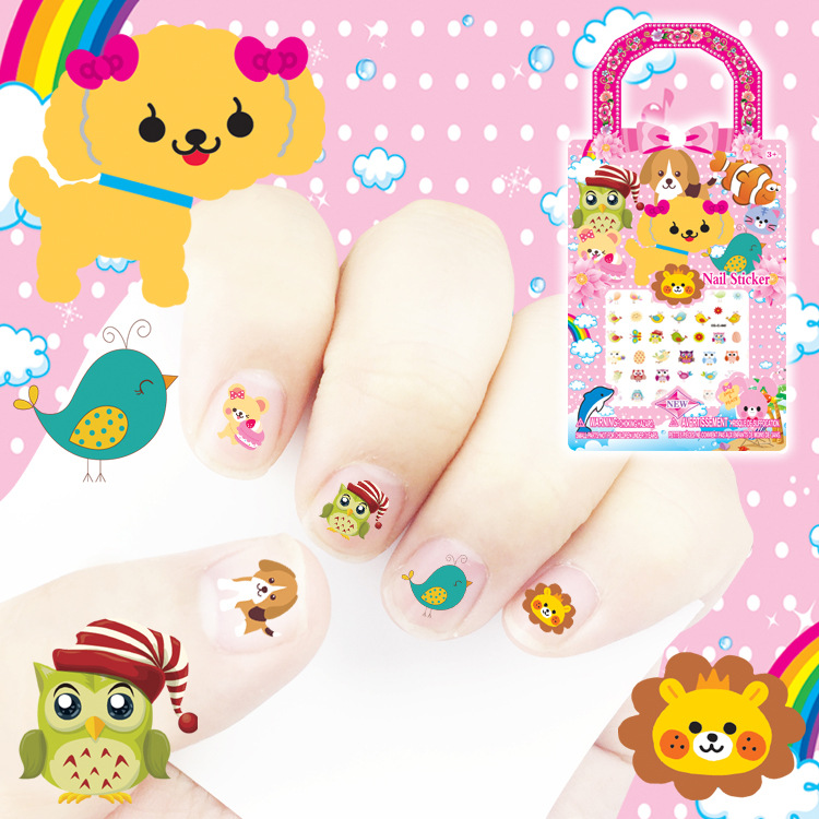국경 간 네일 스티커 어린이 만화 작은 동물 올빼미 오리 네일 스티커 세트 6 방수 네일 아트스토어 가기