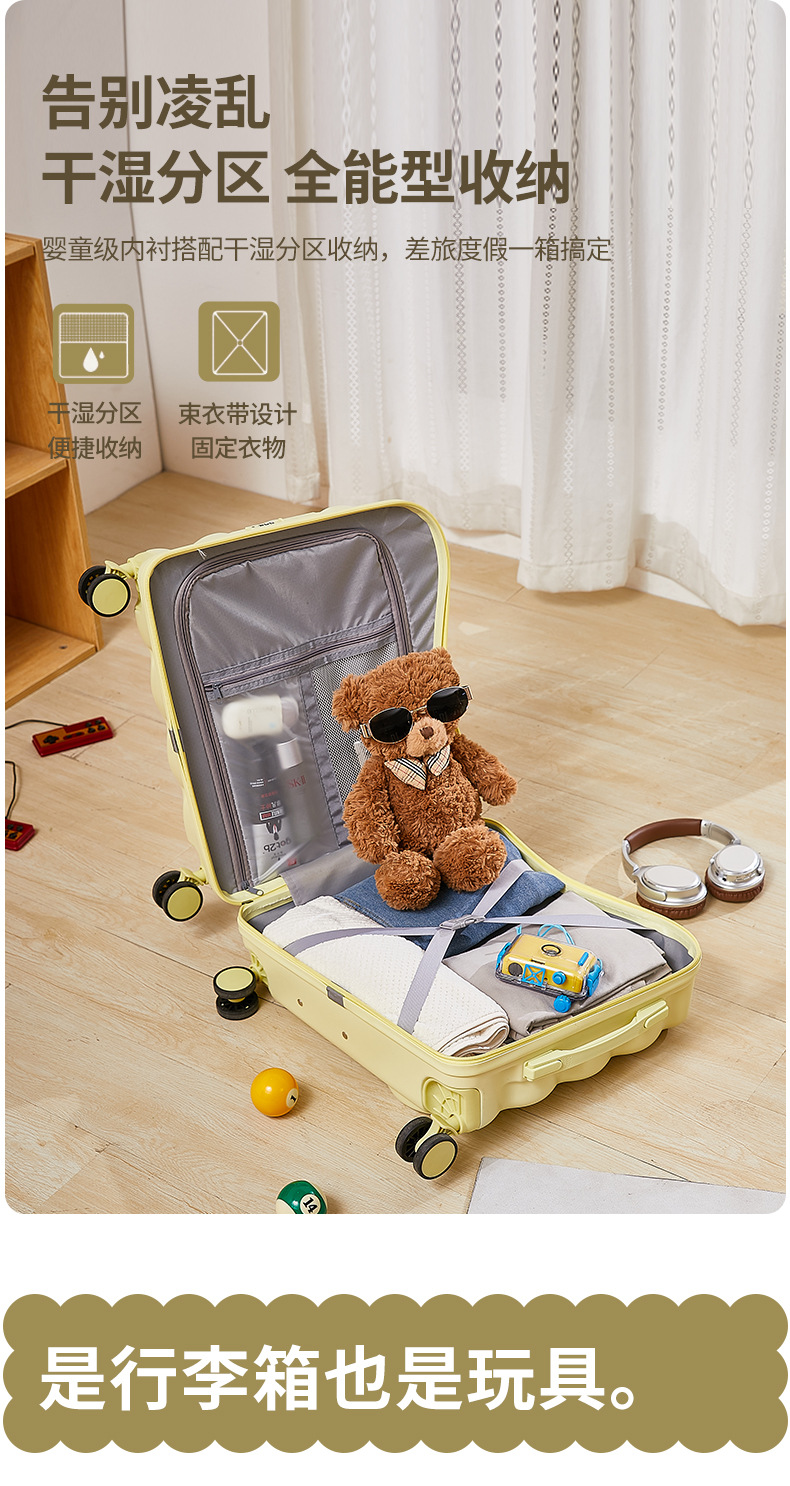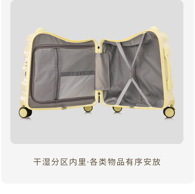 此款小绵羊系列可坐骑行儿童行李箱,潮流新款。PS;小孩请在大人监护下骑行,谢谢!