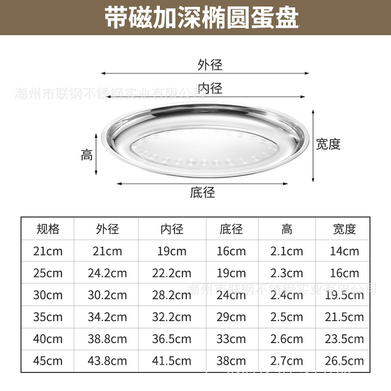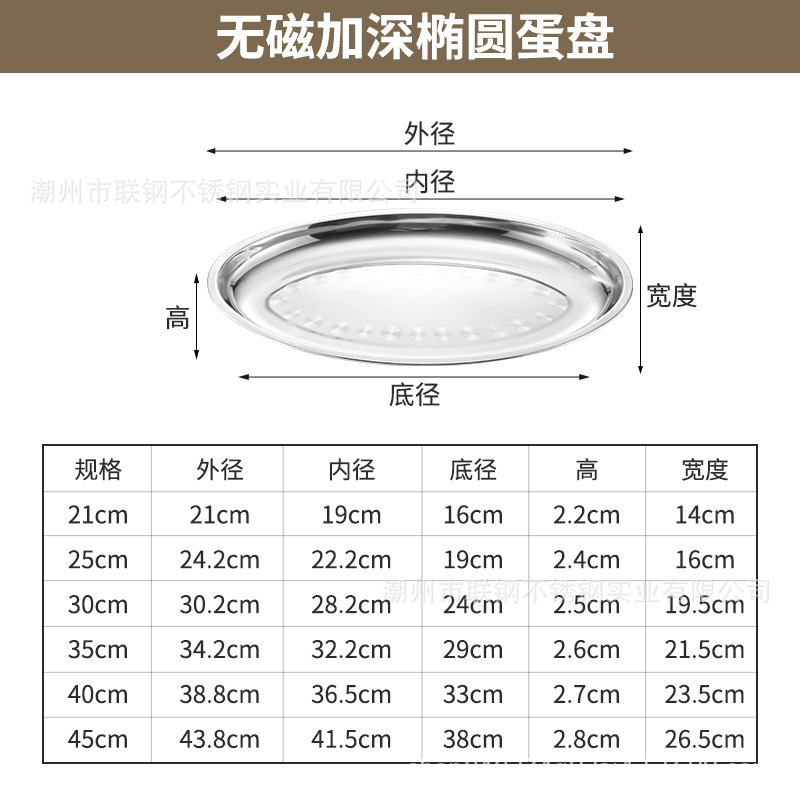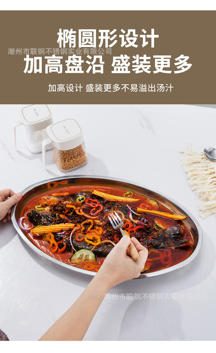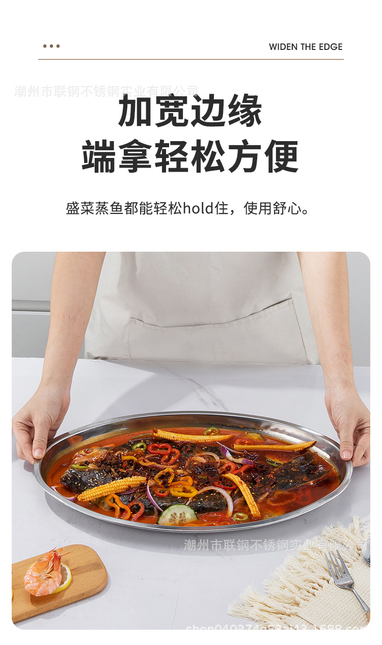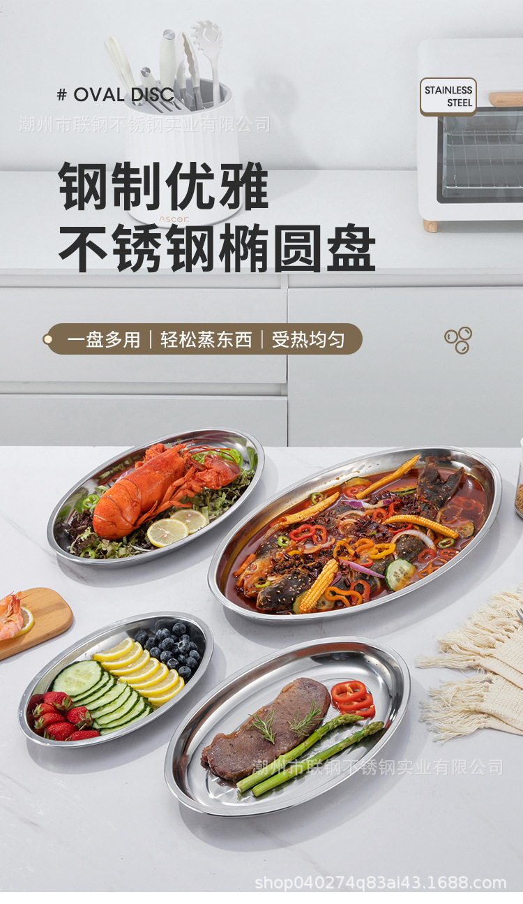 304 스테인레스 스틸 타원형 플레이트 두껍게 확대 된 주방 스테인레스 스틸 찐 생선 플레이트 상업용 쌀 롤 플레이트 매점 접시스토어 가기