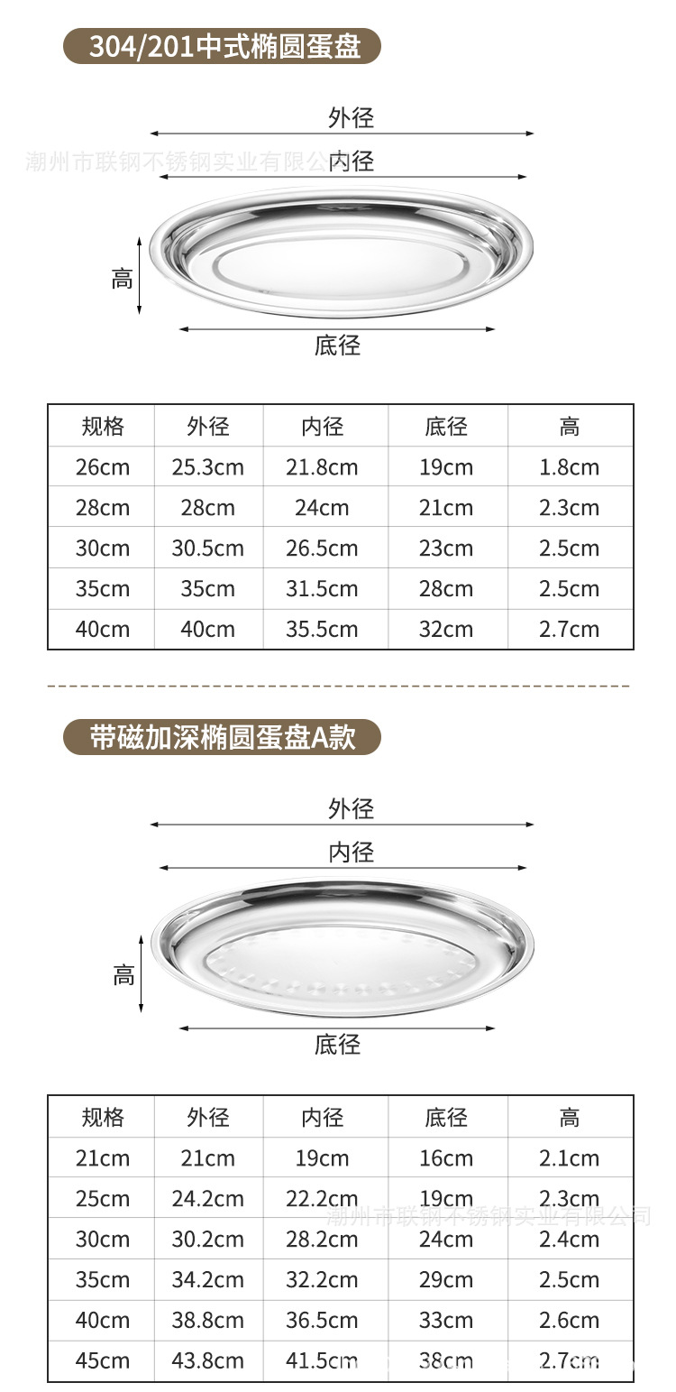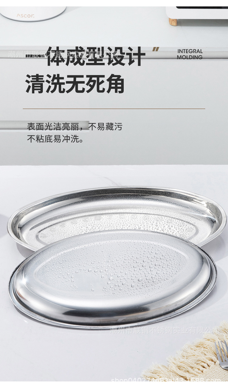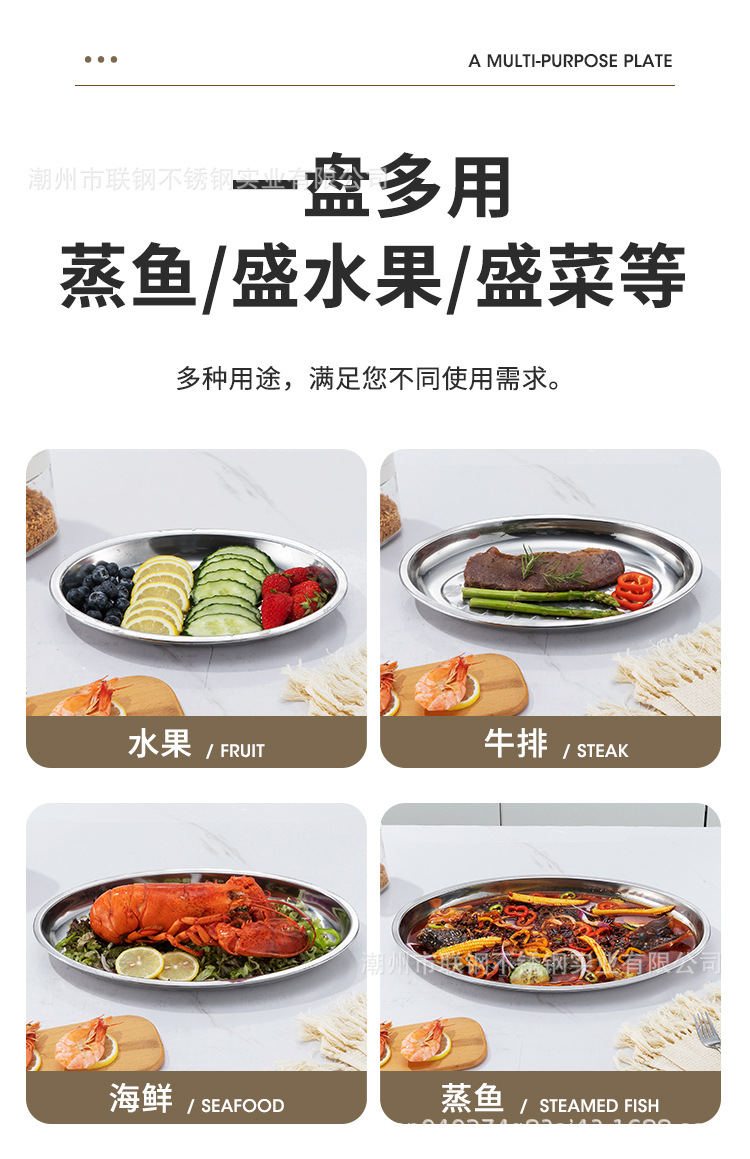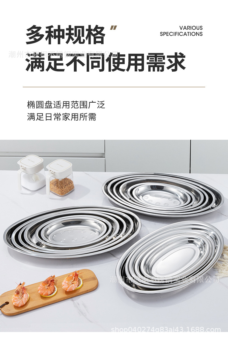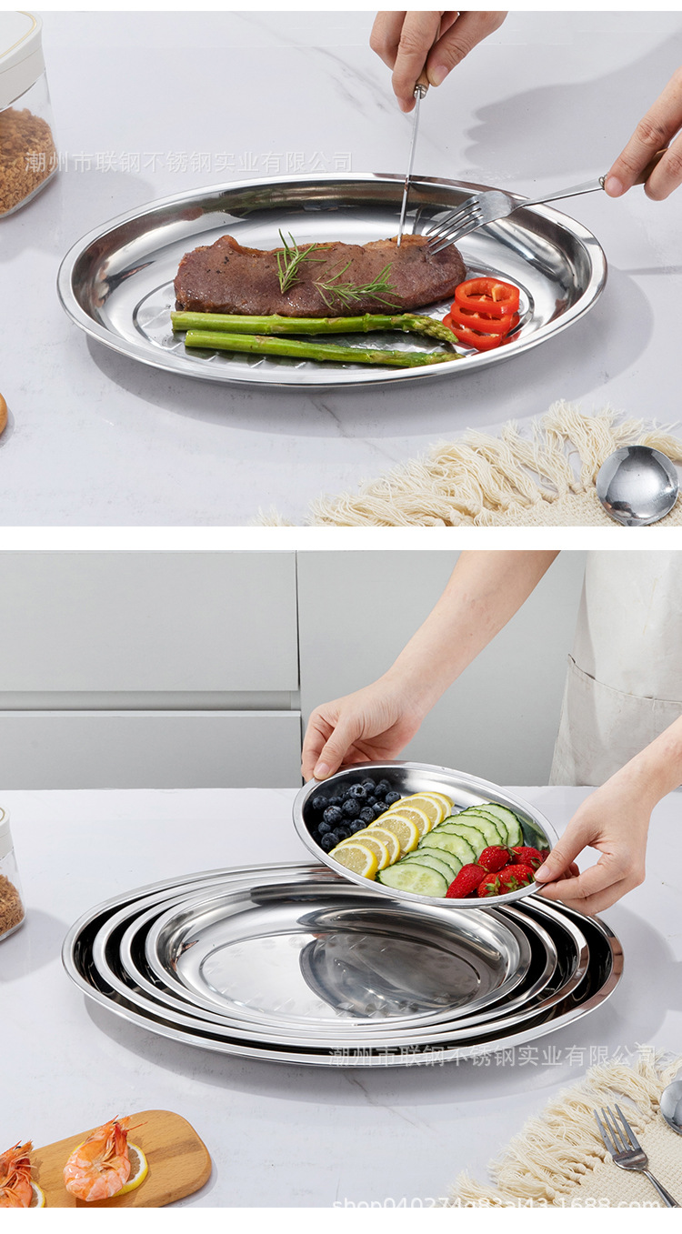 304 스테인레스 스틸 타원형 플레이트 두껍게 확대 된 주방 스테인레스 스틸 찐 생선 플레이트 상업용 쌀 롤 플레이트 매점 접시