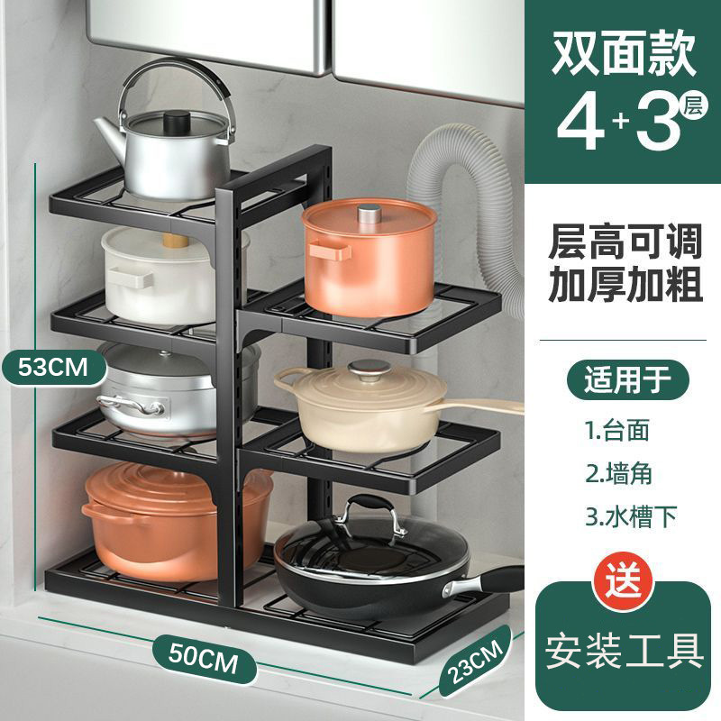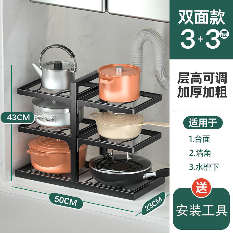 • 양측 냄비 랙 [3-3 조합] 솔리드 레이어 보드 높이 조절 가능