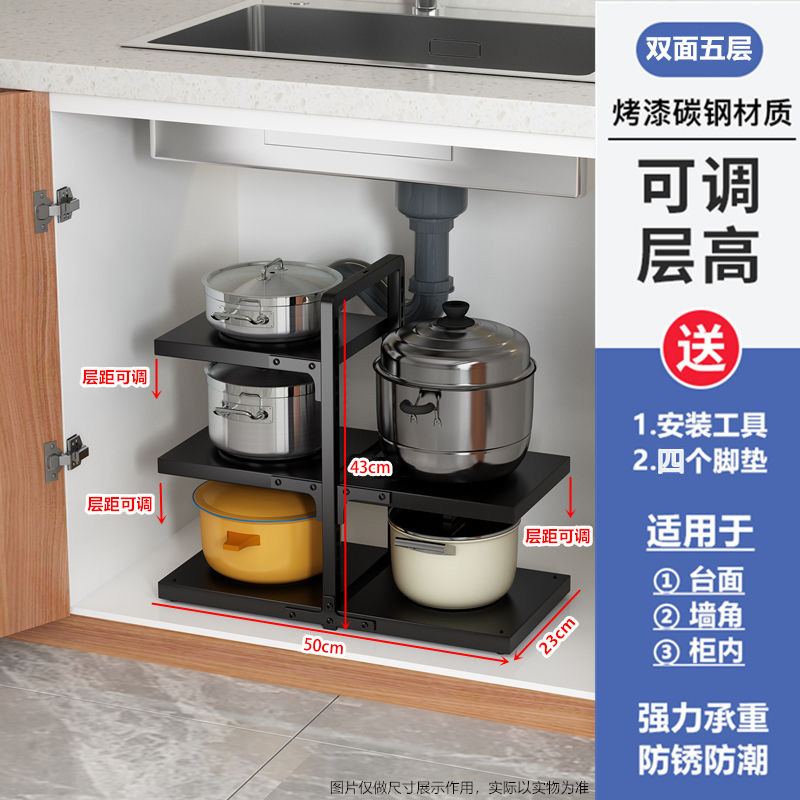 바닥 형 주방 냄비 저장 랙 레이어드 거리 조정 가능한 코너 싱크 저장 가정용 다층 냄비 선반