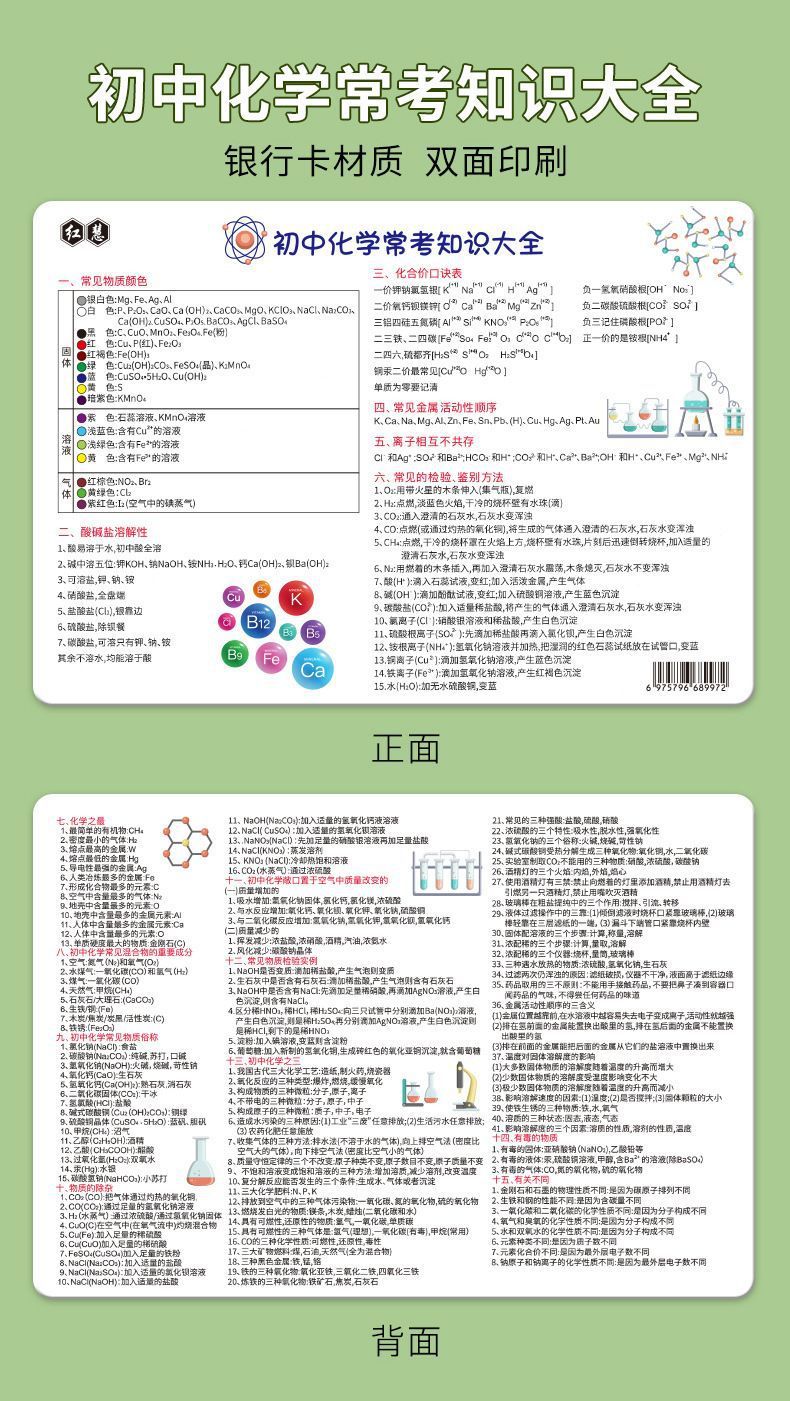 중학교 화학 주기율표 화학은 종종 지식 포인트 수학, 물리학 및 화학 영어 방정식 속기 카드 시험 포인트 요약스토어 가기