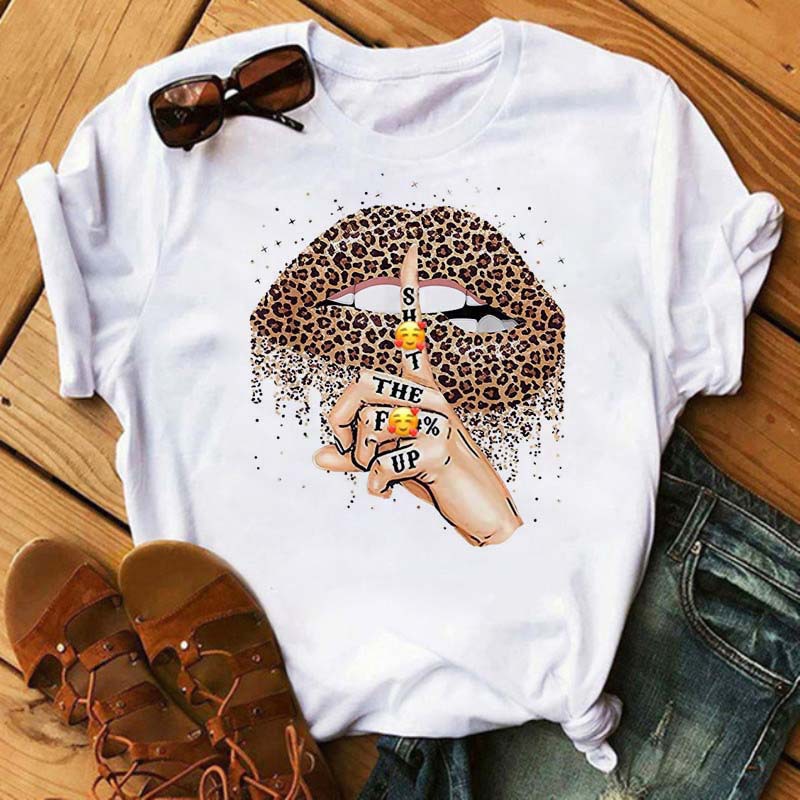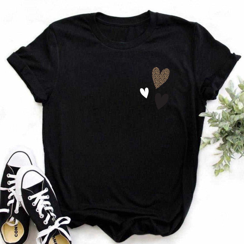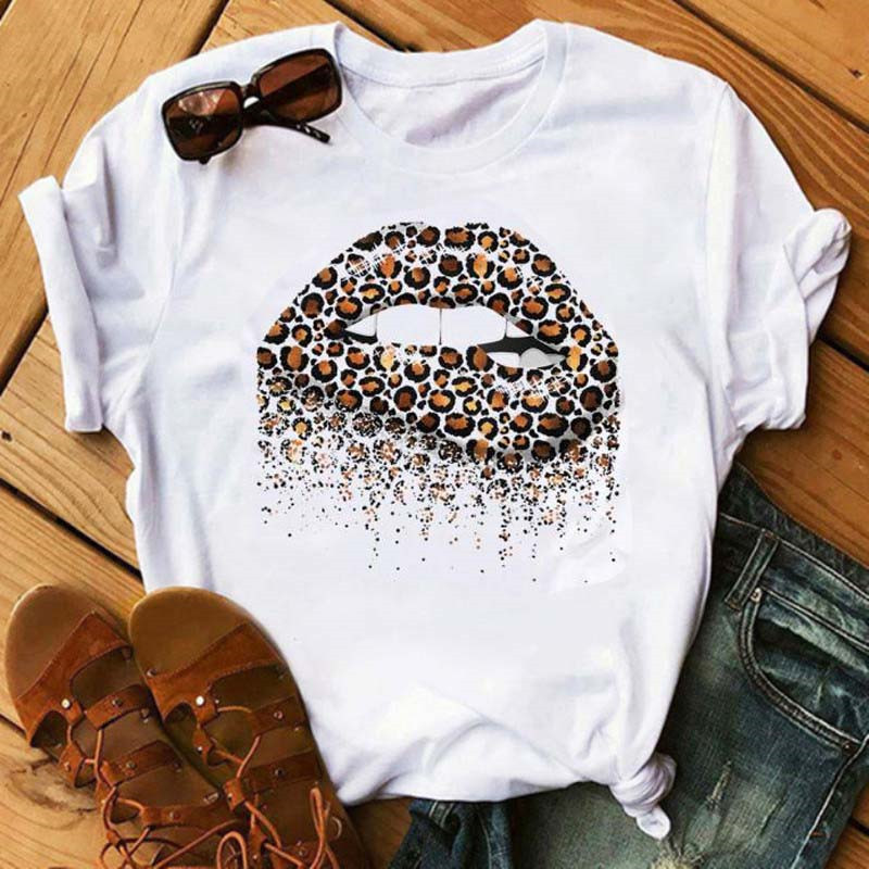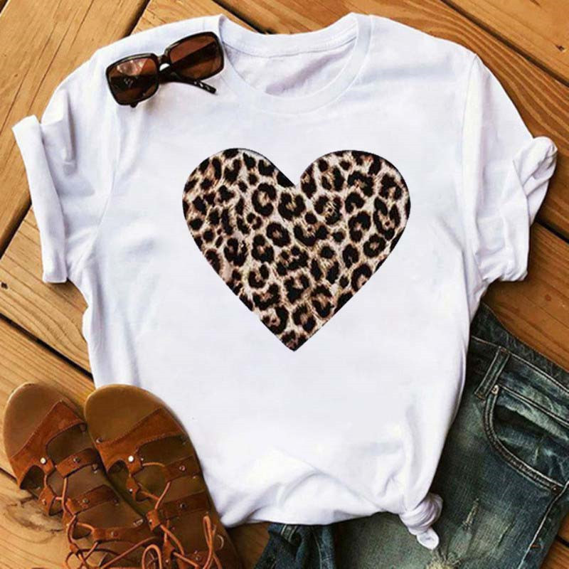 국경 간 플러스 사이즈 느슨한 패션 새로운 표범 사랑베이스 셔츠 여성용 반팔 티셔츠