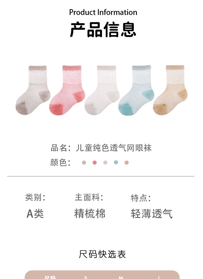 아기 양말 여름 메쉬 얇은 아기 양말 느슨한 통기성 단색 소년 소녀 어린이 클래스 튜브 양말 도매스토어 가기