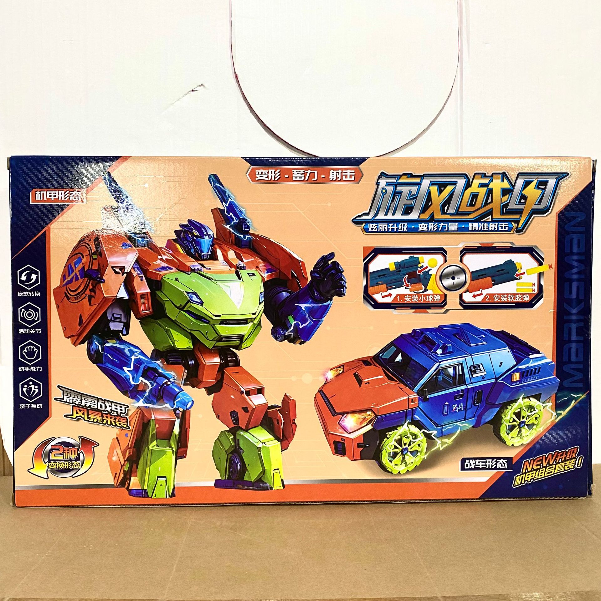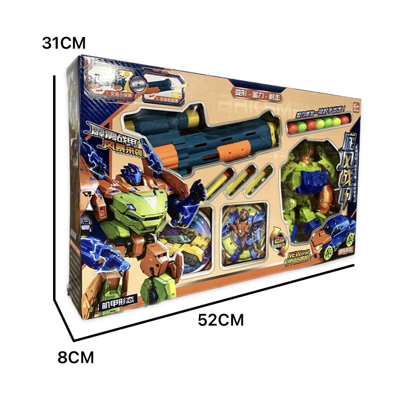 소년 선물 상자 부드러운 총알 총 회오리 바람 갑옷 변형 로봇 어린이 장난감 기관 등록 포인트 갱신 선물