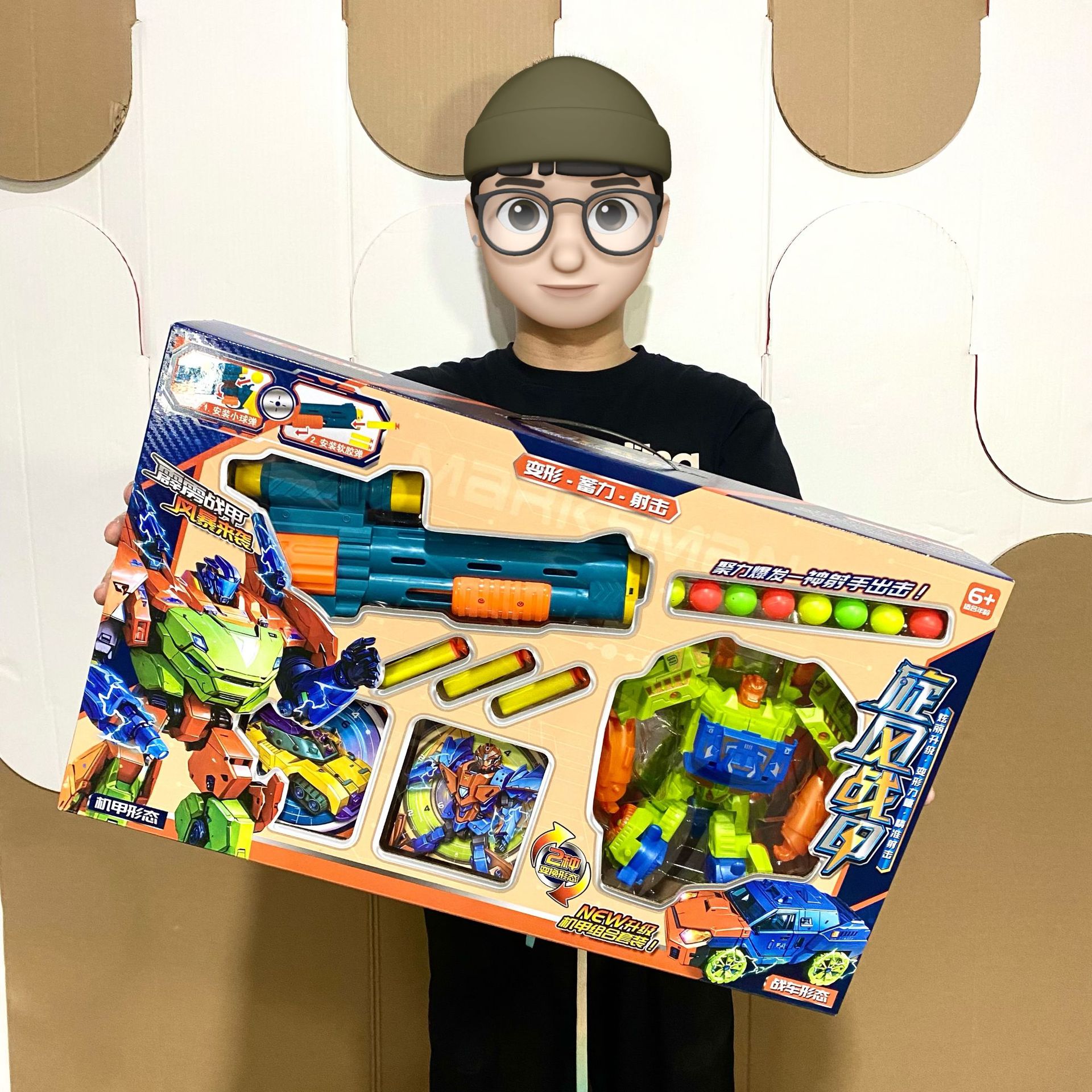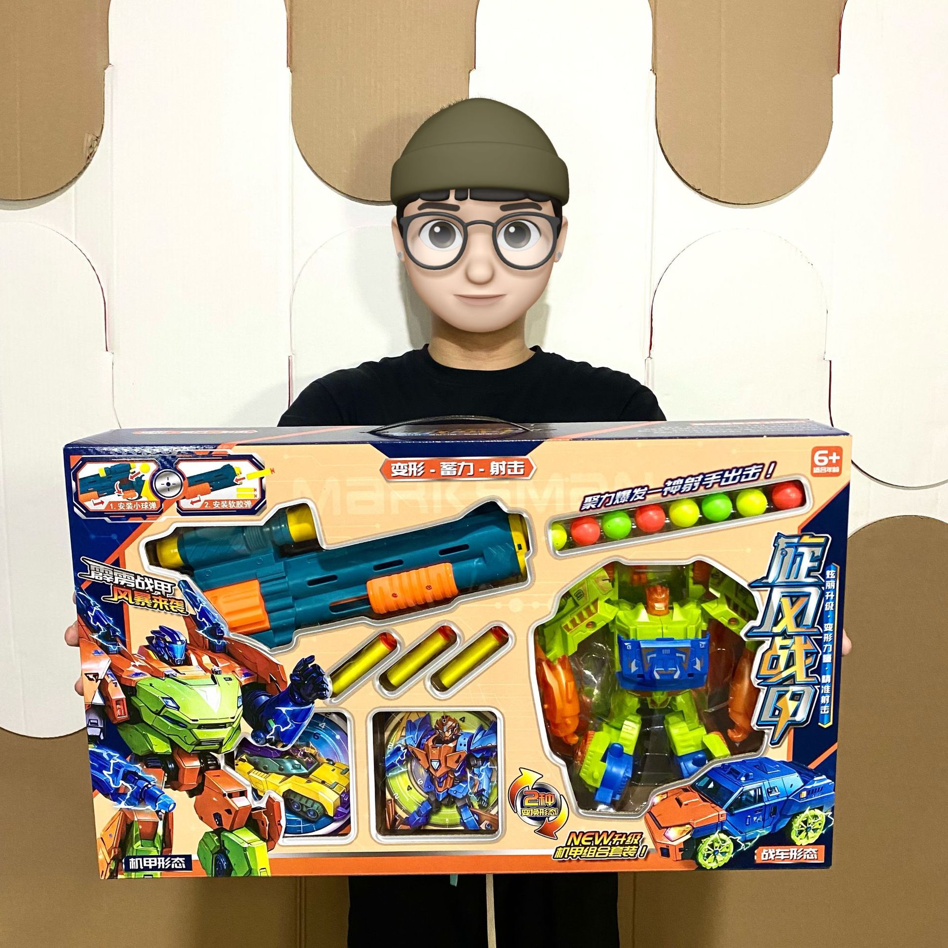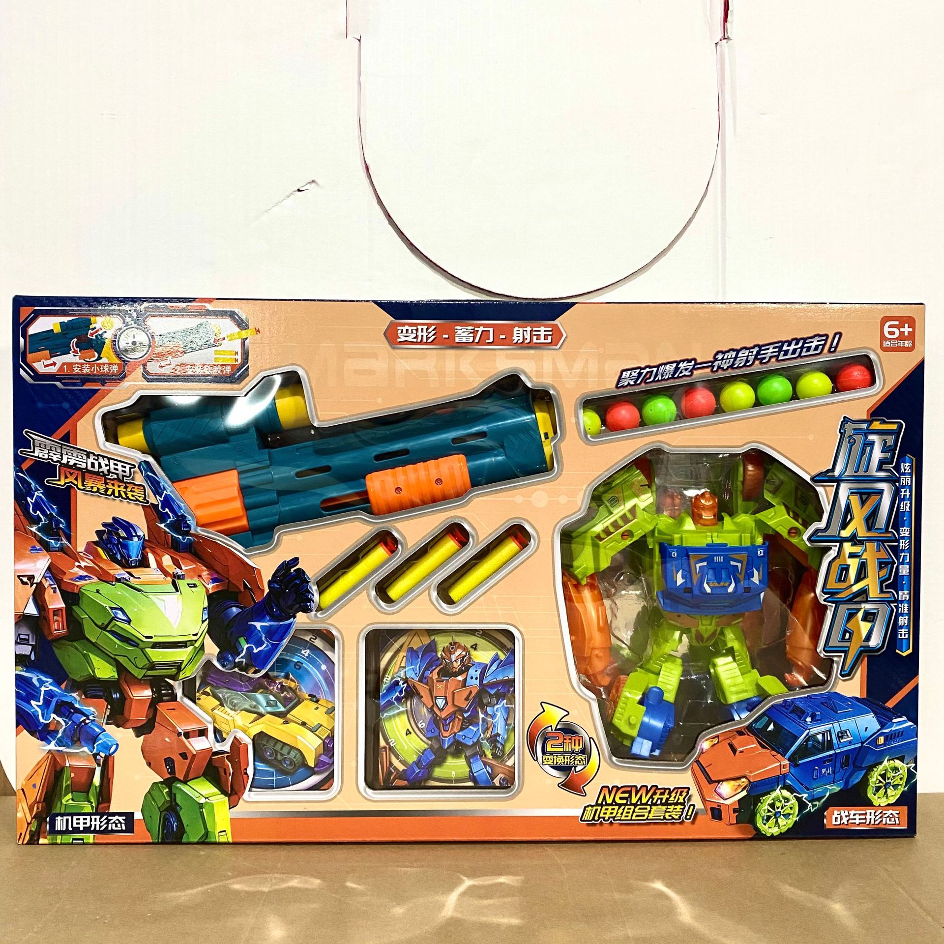 소년 선물 상자 부드러운 총알 총 회오리 바람 갑옷 변형 로봇 어린이 장난감 기관 등록 포인트 갱신 선물스토어 가기