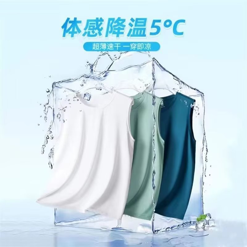 허리 코트 민소매 조끼 아이스 실크 티셔츠 남성용 캐주얼 여름 플러스 사이즈 할로우 얇은 시원한 땀 조끼 빠른 건조 옷스토어 가기