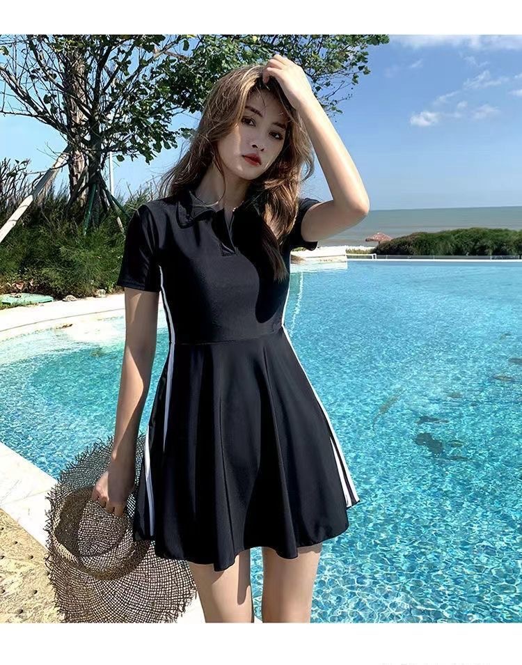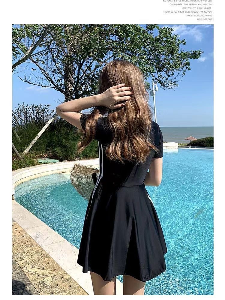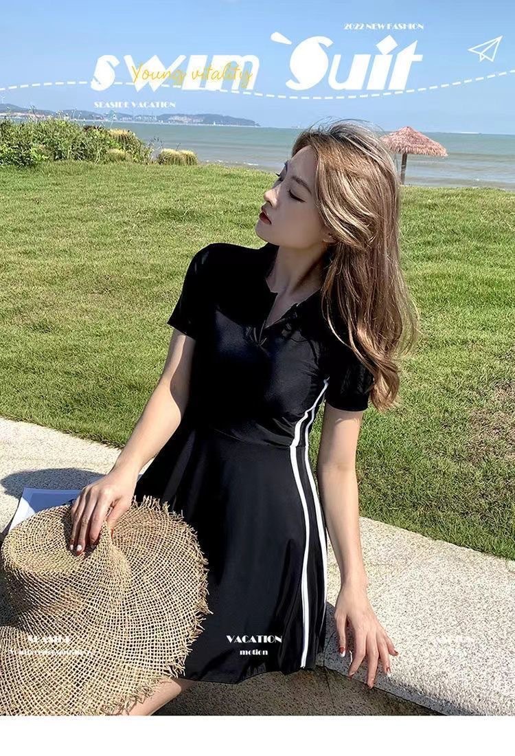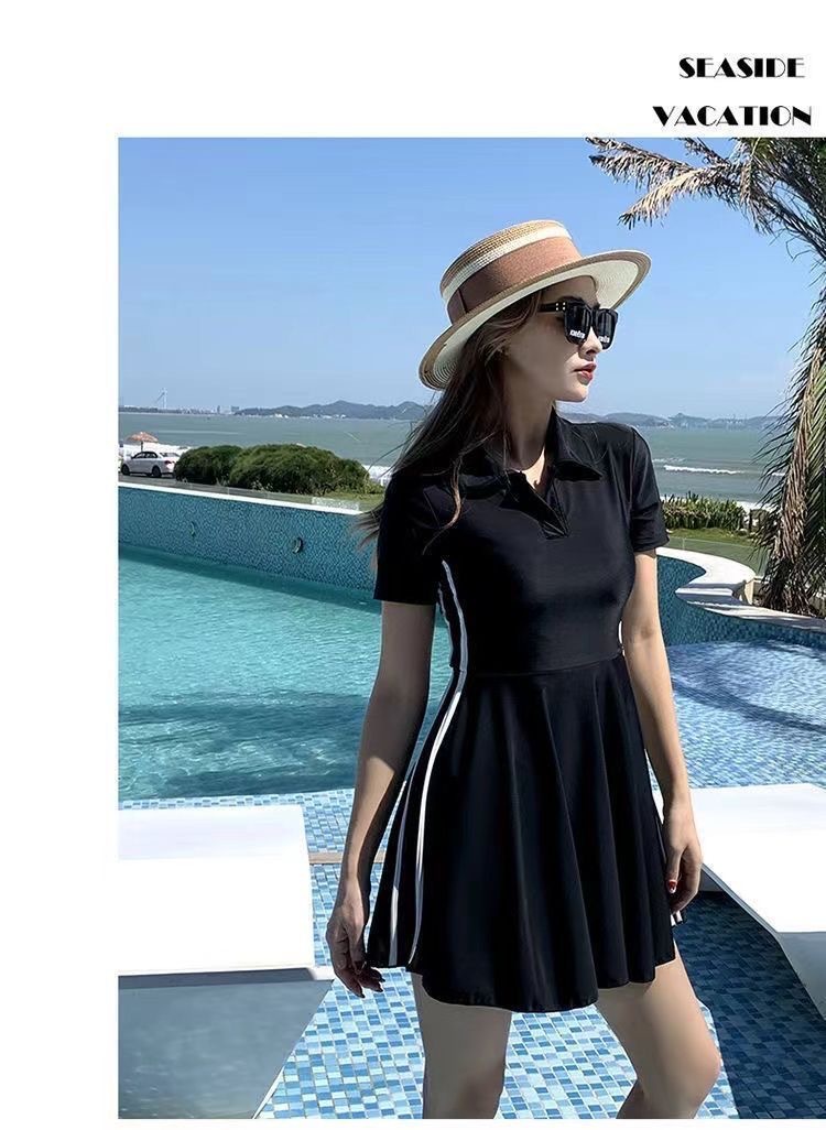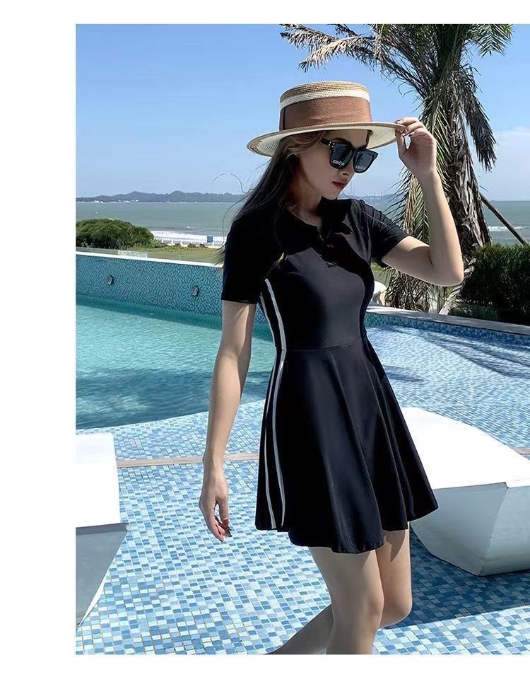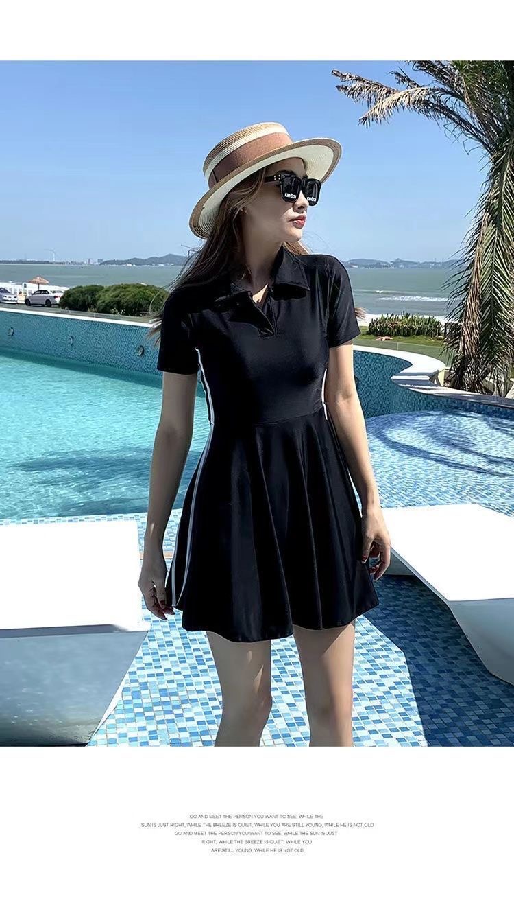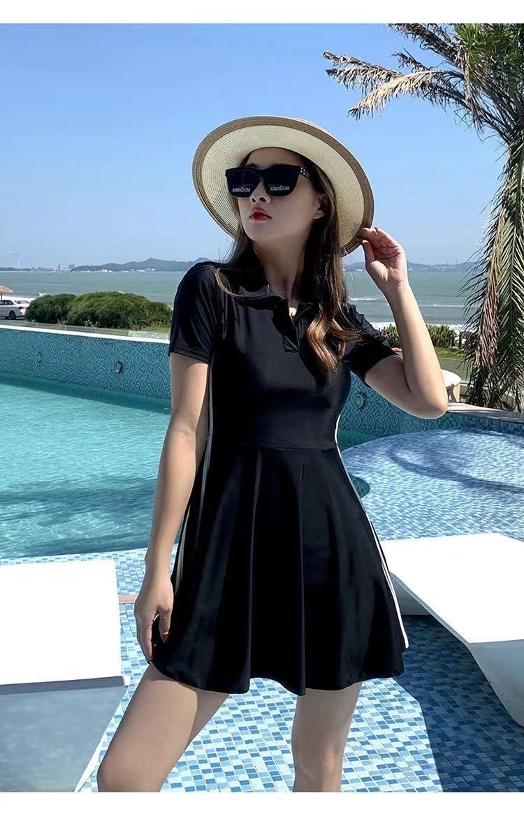 여성 수영복 여름 2025 새로운 보수적 인 원피스 스커트 스타일 배를 덮고 슬리밍 스포츠 복서 학생 온천 수영복